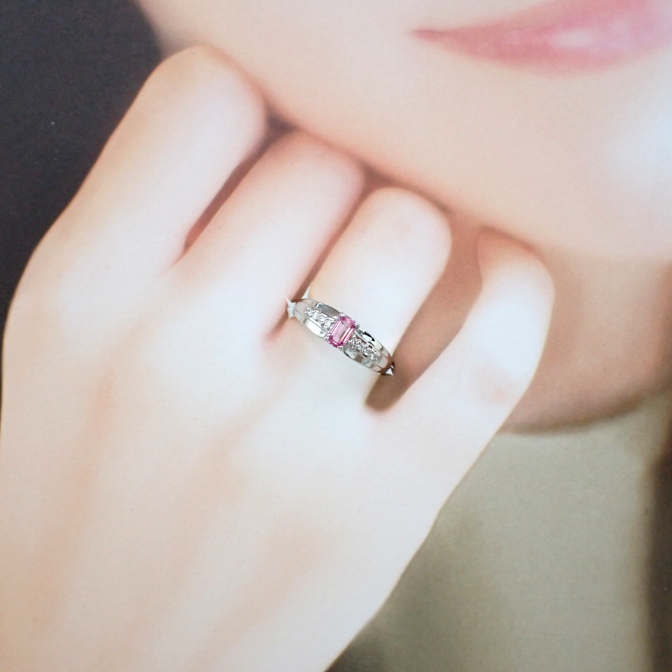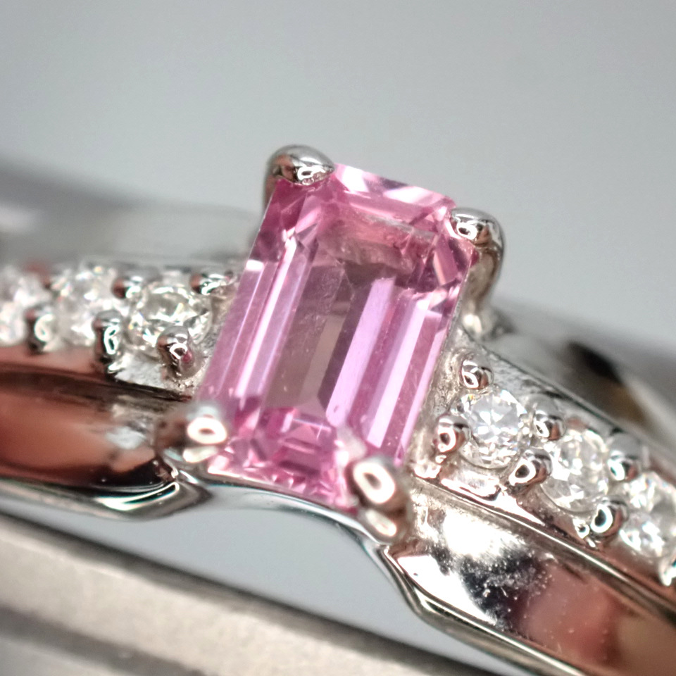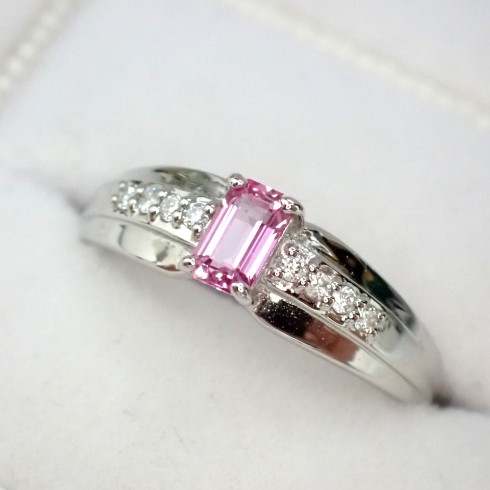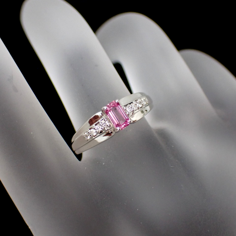 | ご覧いただきまして誠にありがとうございます。 当方は真面目に商品とお客様と向き合って行きたいと考えております。 どうぞ宜しくお願い致します。 ・中石: パパラチャサファイア 0.335ct ・脇石: ダイヤモンド 計0.06ct ・素材: PT950(刻印あり) ・重量: 約3.49グラム ・最大縦幅: 約5.0ミリ ・最大厚み: 約3.8ミリ ・現状サイズ 約11号 ±4号程度サイズ直し可(有料) ・状態: 新品 ・付属品: DGL鑑別書・ジュエリーケース パパラチャサファイアジュエリーのご紹介です。 派手さはありませんが、色・発色・透明度・テリ・プロポーション全てにおいて高いポイントを有する、高品質なパパラチャサファイアです。 そして何といってもやはり最大の魅力はエメラルドカットがほどこされたパパラチャサファイアという点でしょう。 パパラチャの柔らかなベリー系の美しい色合いと、ステップカットのシャープな輝きがたまらなく美しい逸品に仕上がっています。 ルーペレベルでもほとんど気になるインクルージョンは存在しないからこそ、ひとつひとつのファセットが大きいエメラルドカットでも美しさを発揮できています。 縦使いで幅広のボリュームのあるデザインにお仕立ていたしました。 近年鑑別機関によるパパラチャの色の範囲がグッと狭まり、非常に厳しい状況ですが、その分お客様には間違いのない綺麗なパパラチャをお届けできるチャンスだと考えています。 カットもカラーも一級品のパパラチャサファイアジュエリーです。 是非この機会にいかがでしょうか。 ※「興味はあるけど少し不安で購入に踏み切れない」という方は「返品について」に記載してございます、「安心の無料返品システム」をご参照の上ご活用いただければ幸いです。 ご質問などお気軽にお問い合わせください。 誠実に対応させていただきます。 | |
