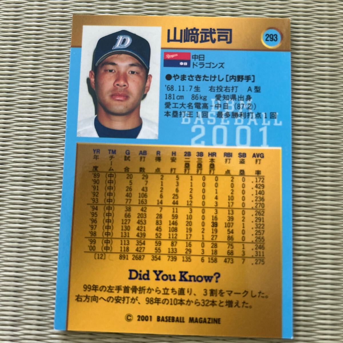 2001BBM 293 山﨑武司 黒サインパラレル 中日ドラゴンズ