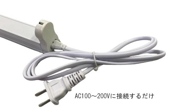 直ぐに設置 簡易型(簡単設置)120cmLED蛍光灯+スリム台座1灯用 電源配線コンセント付 (6000K クリアーカバー 白色発光)