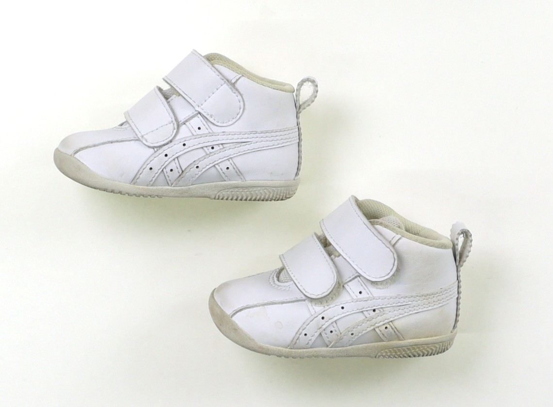 サイズは12cmです。ベルトをマジックテープで留めるタイプです。つま先・側面に黒ずみ汚れがありますがソールはしっかりとしていてまだお使い頂けそうです。男女兼用でお使い頂けそうです。
