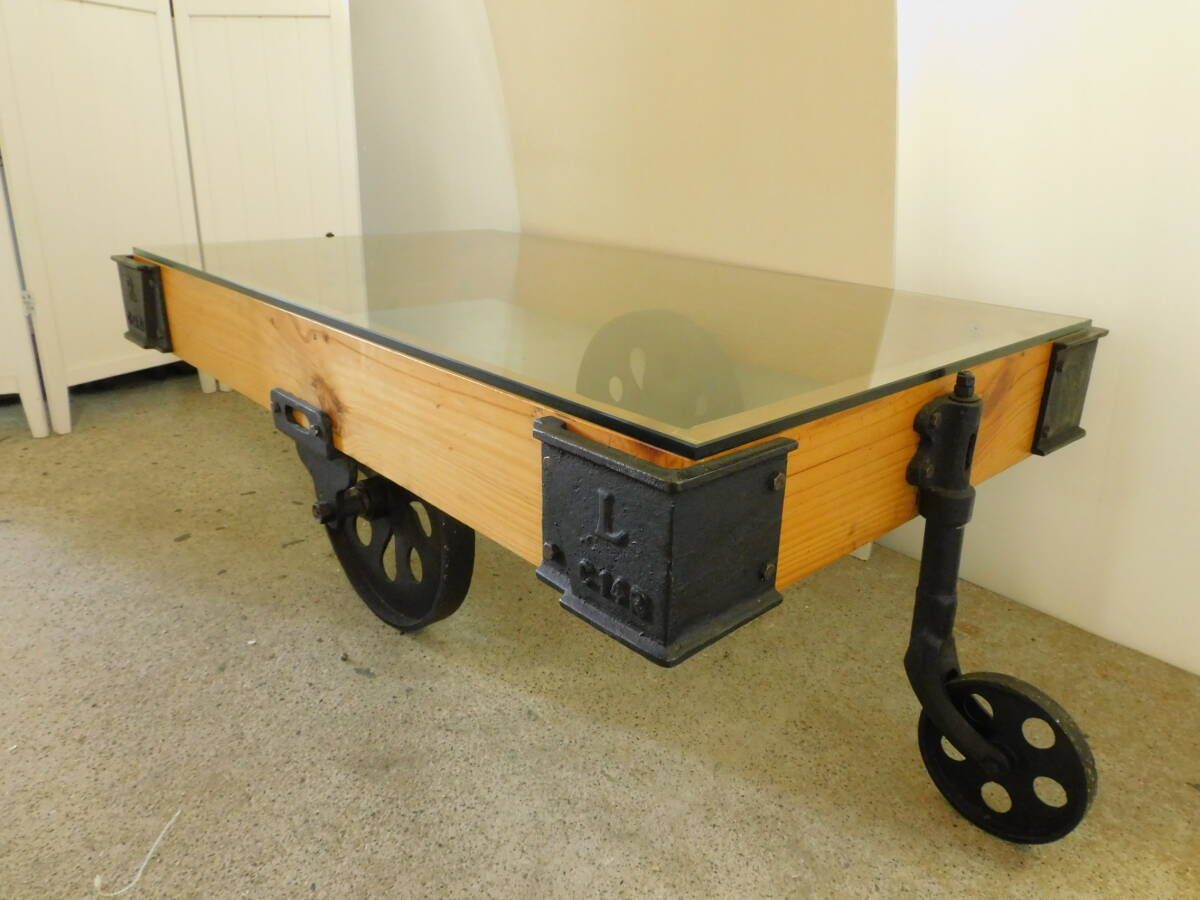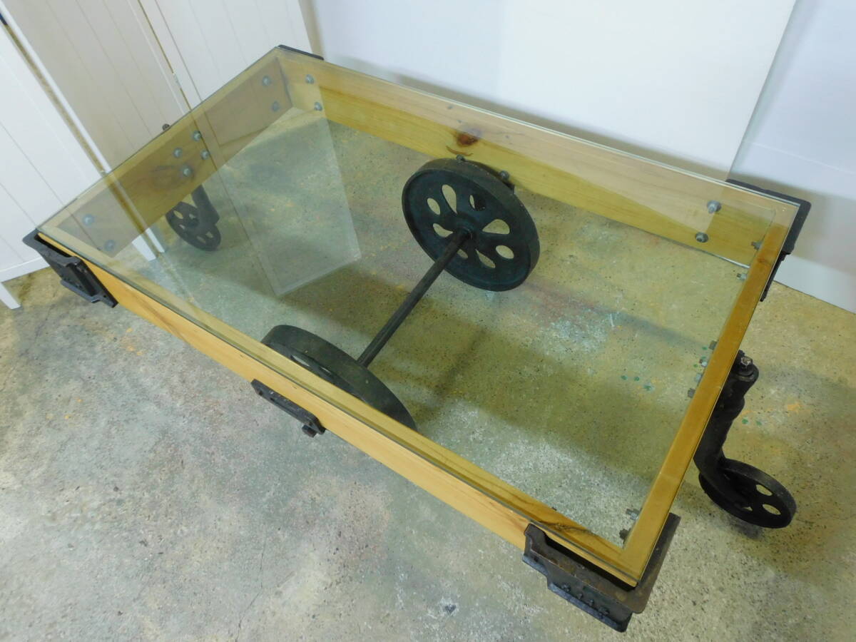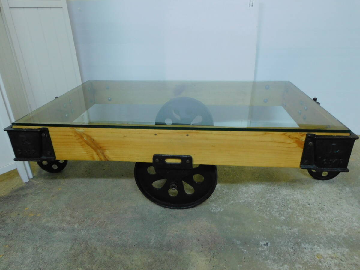 t139 トロリーローテーブル 厚さ12mmのガラス天板 ドーリーテーブル トロリーテーブル ヴィンテージ アイアン インダストリアル | |
