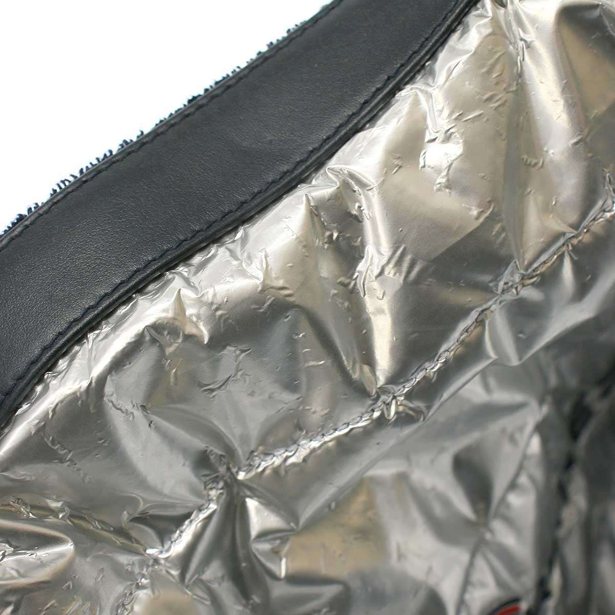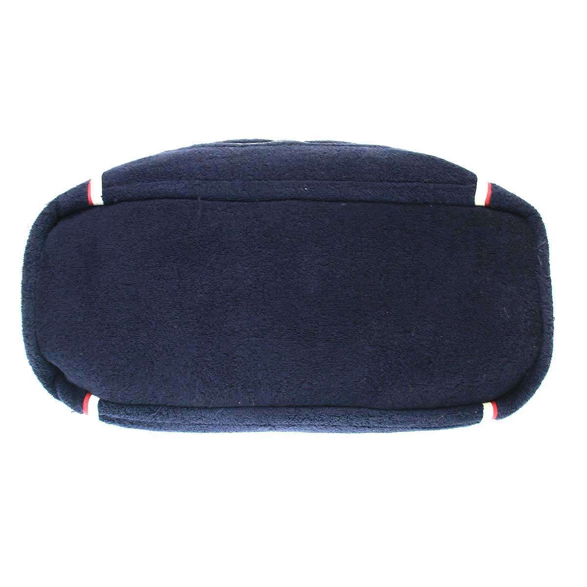 内側にシミ(画像9枚目)、内側シルバーの生地所々に劣化、持ち手部分に一部剥げ、表パイル地部分所々にホツレ(糸飛び出し)があり使用感がございます。