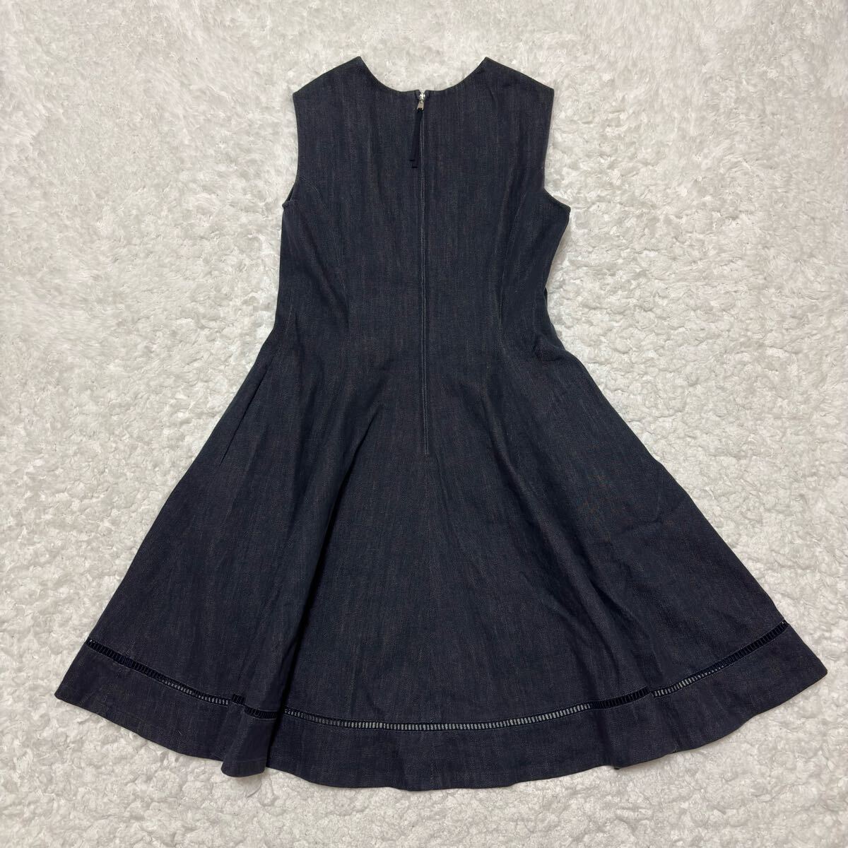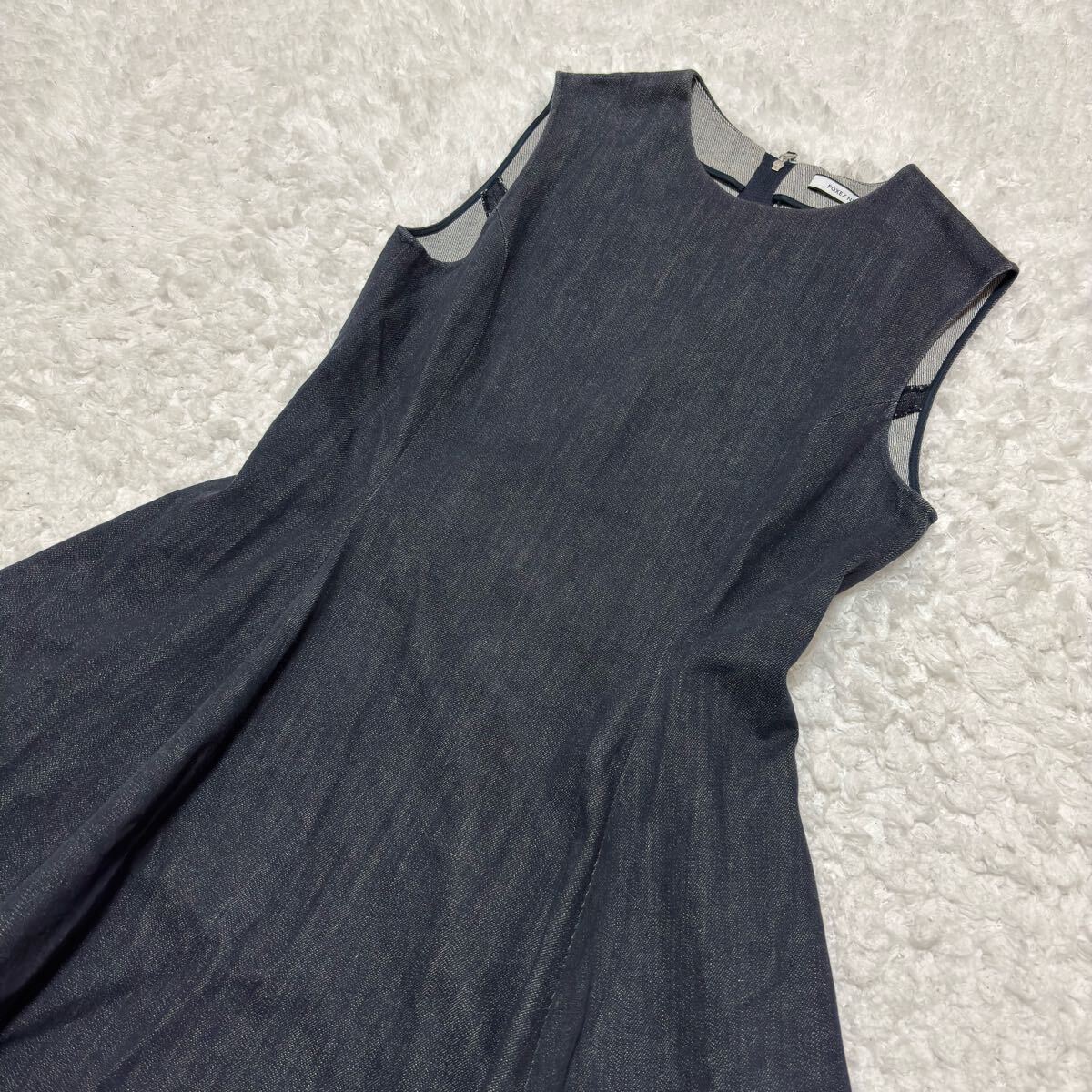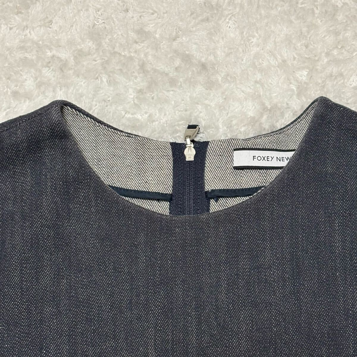 【美品】FOXEY デニム ワンピース ノースリーブ フレア ジャガード サイズ38 フォクシーニューヨーク