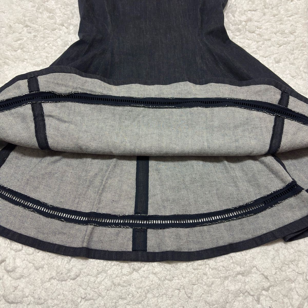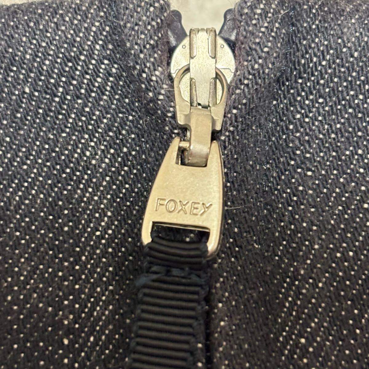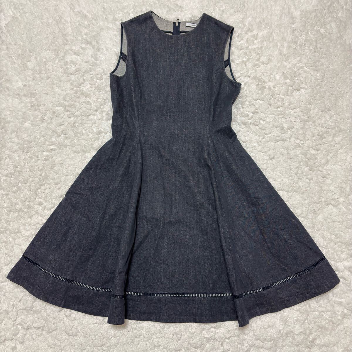 【美品】FOXEY デニム ワンピース ノースリーブ フレア ジャガード サイズ38 フォクシーニューヨーク