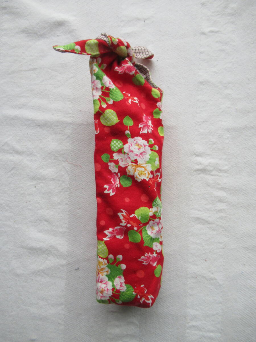 手作り ペットボトルカバー リバーシブル 赤地花柄