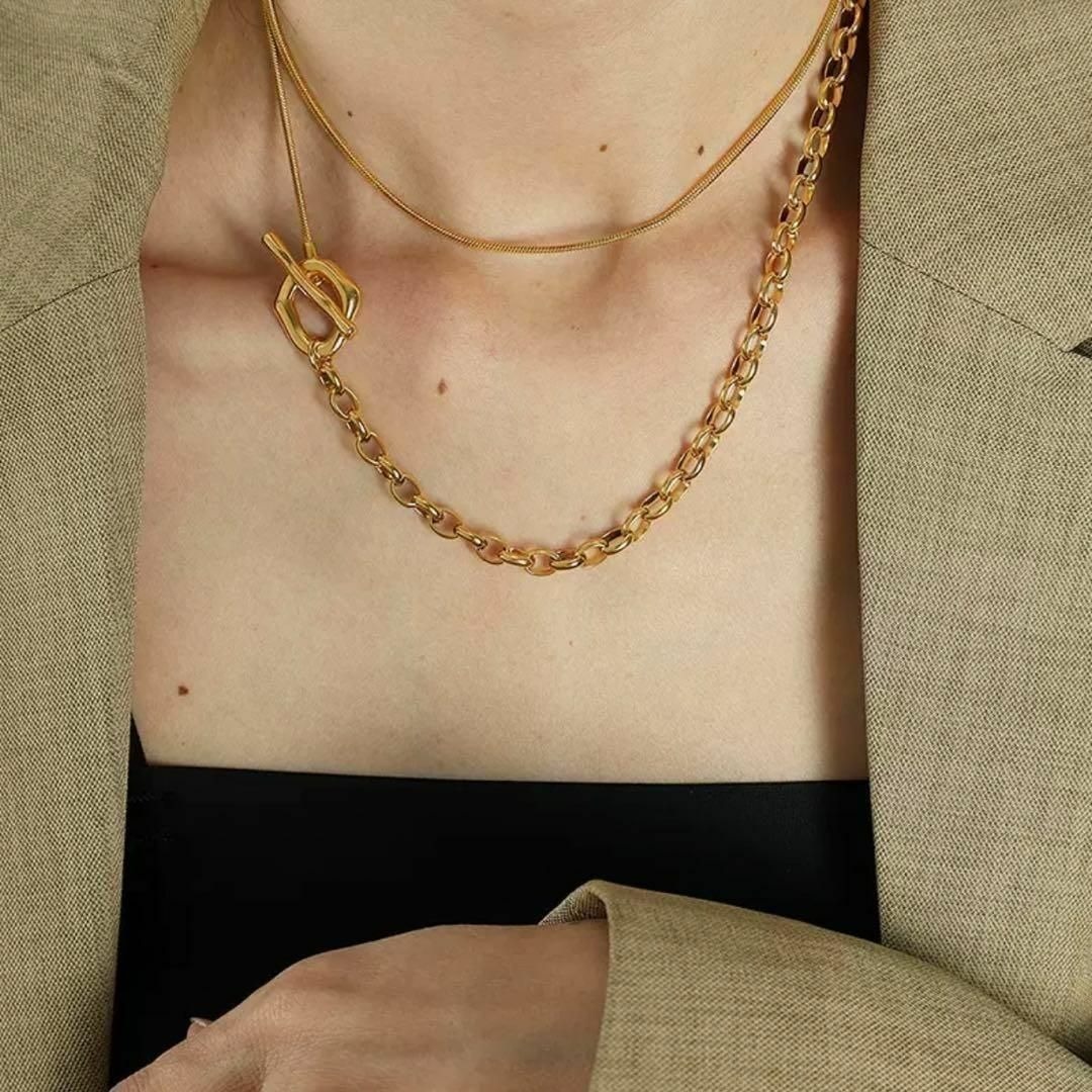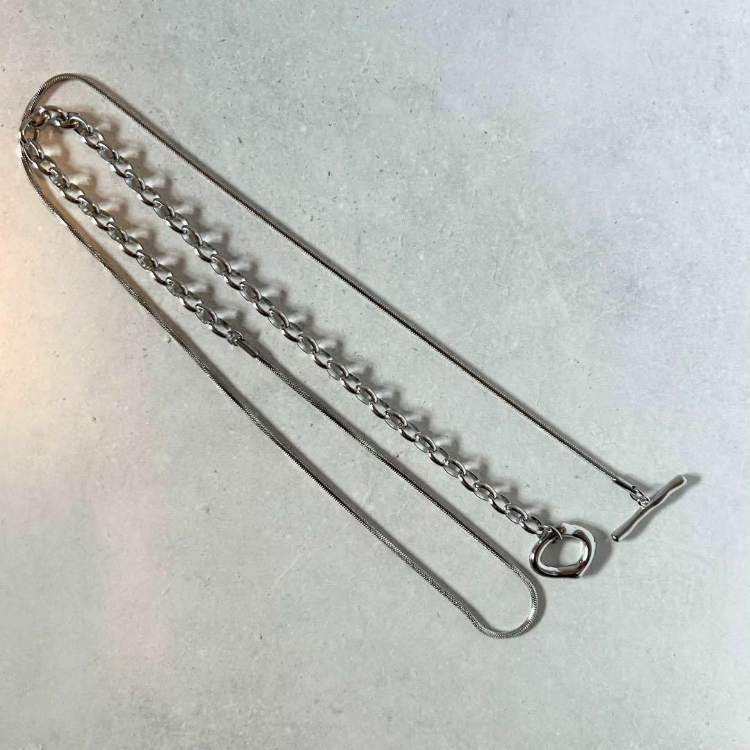 ボリューム感のあるステンレスチェーンが特徴のマンテルチェーンネックレスです。