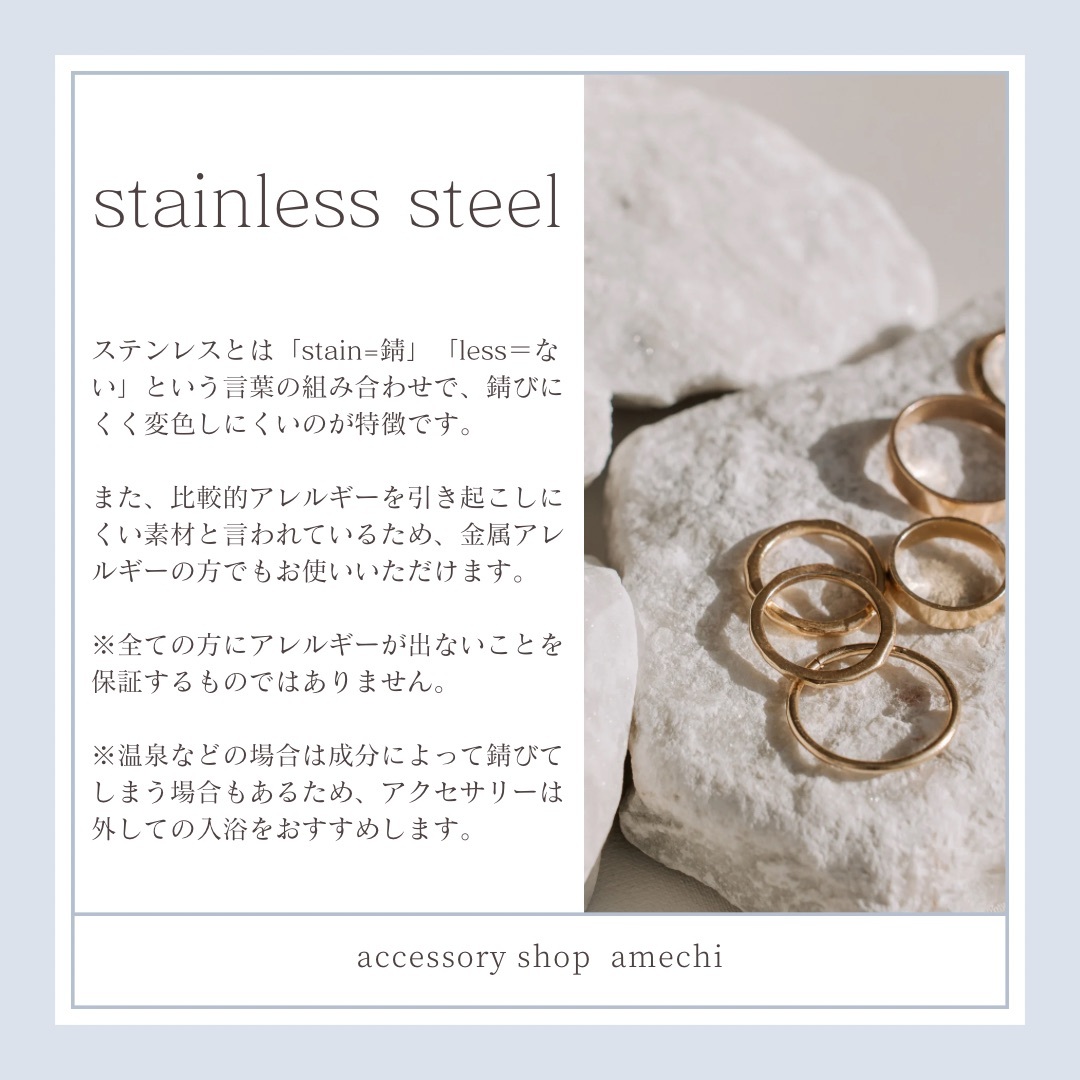 ※ステンレスは比較的アレルギーを引き起こしにくい素材ですが、全ての方にアレルギーが出ないことを保証するものではありません。