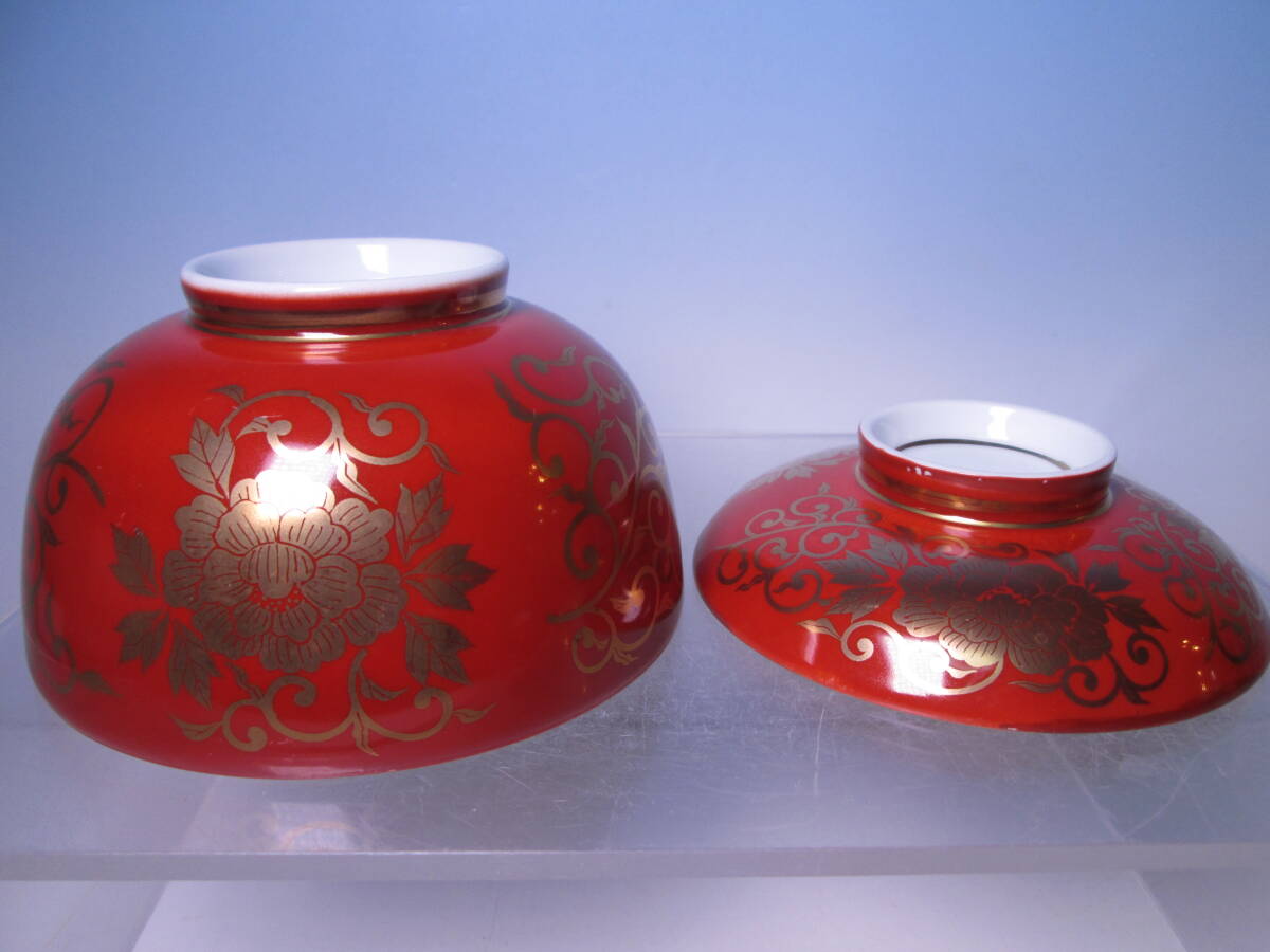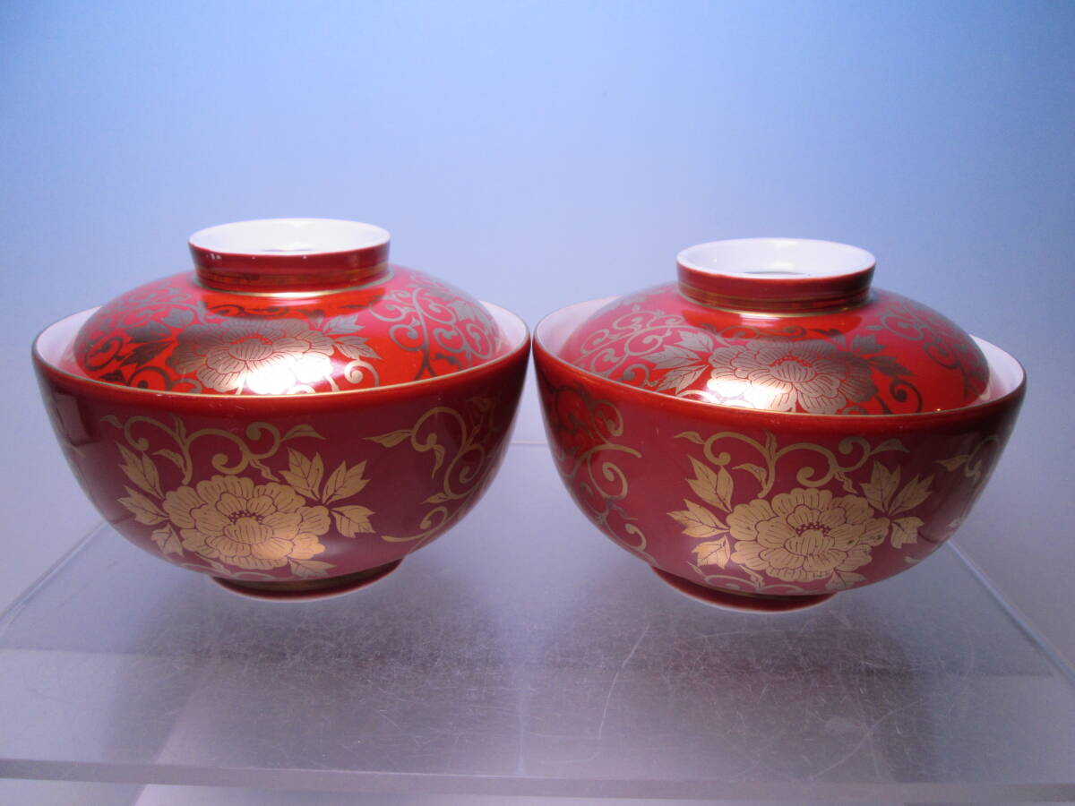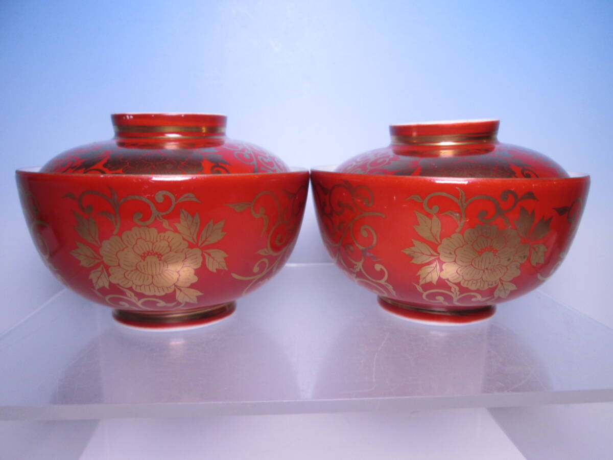 ☆お料理屋さんの器 在銘 金襴手 花文 蓋向付 二客 箱無し 蓋茶碗/茶懐石/割烹/日本料理