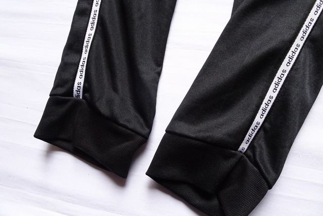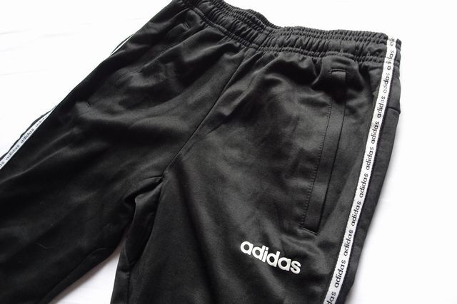 adidas/アディダス/トラック長パンツ/ジャージ素材/脇白ラインテープ貼付縫/裾リブ素材/スポーツ/黒/ブラック/XSサイズ(4/17R7)