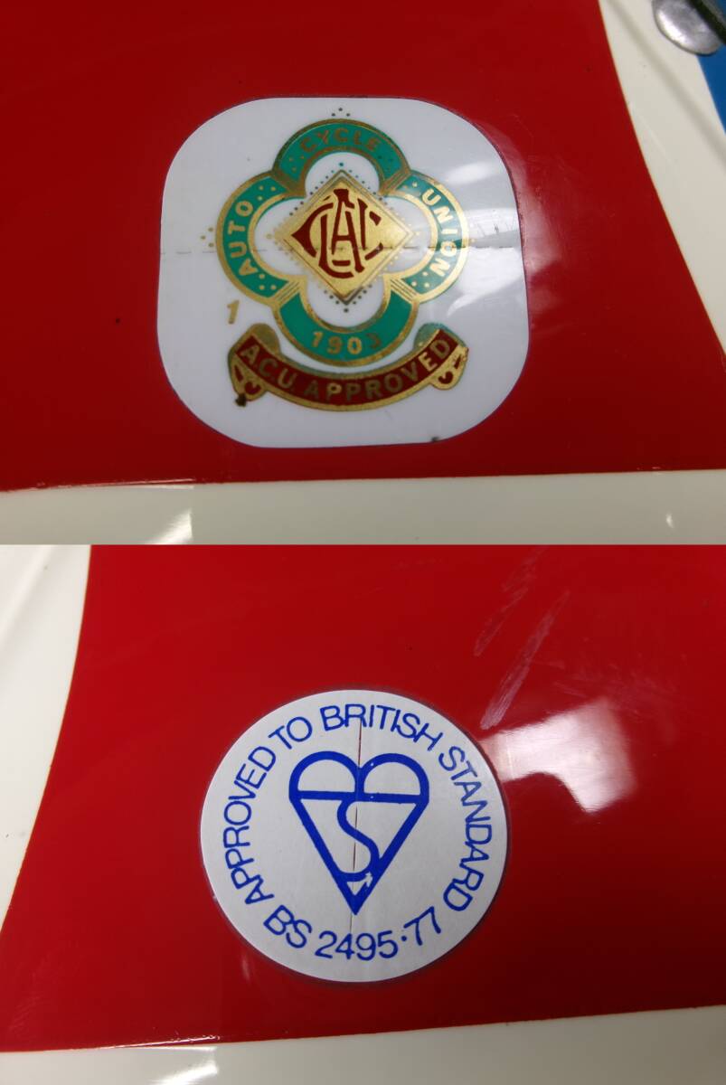 ■外装状態: 若干傷はありますが、全体的に艶もあり綺麗な状態です。 ■内装状態: 新しい生地&スポンジでリペア済みなのですぐに使用可能です。 ■サイズ: 元の表記 3 被った感じLサイズ(約59~60cm)位です。 若干の誤差はご了承下さい。 ■コメント: 1977年製 美品!KANGOL フルフェイスヘルメット です。 内装は加工済みなので程よく目深く被れシルエットも抜群です。 オリペン、デカール類もオリジナルです。純正クリアシールド付属。 お好きな方はこの機会に是非! ※装飾用です。公道での使用はお控えください。 |