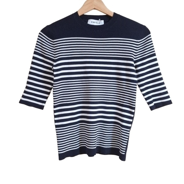 エンフォルド ENFOLD 七分袖セーター/ニット サイズ38 M - ダークネイビー×白 レディース クルーネック/ボーダー トップス