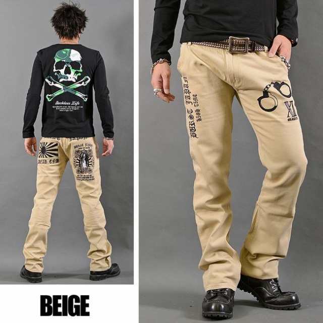 BURST JAPAN 刺繍日章旗 マリアフェイクポケット シューカットチノパンツ 刺繍 BUJ-0030 新品 ベージュ M