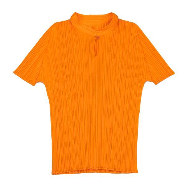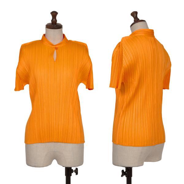 | プリーツプリーズPLEATS PLEASE プリーツスタンドカラースキッパー半袖シャツ オレンジ4 |