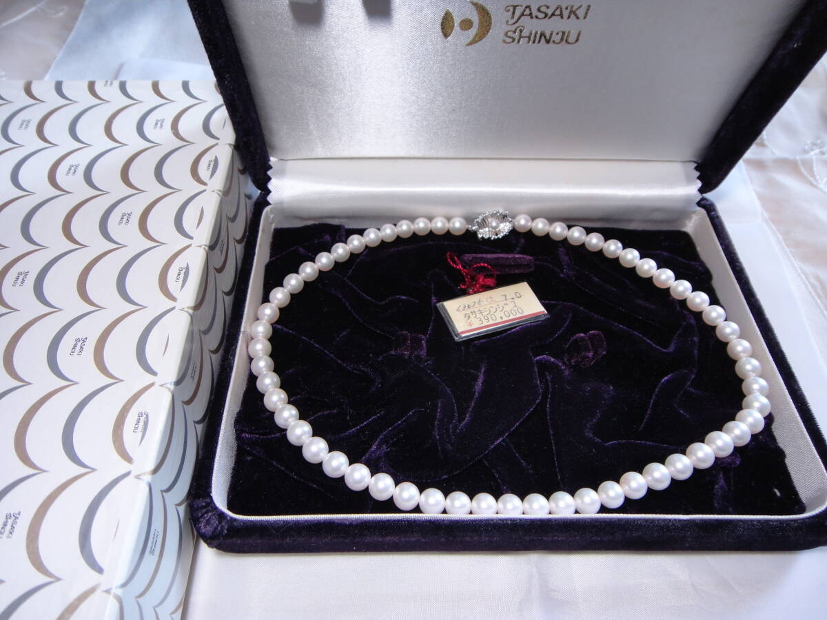 田崎真珠 TASAKI ネックレス 約7~7.2㎜玉 ホワイト ツヤテリ強 約44㎝ かなり良品 貝にT刻印 ケース付き 外箱付 ヴィンテージ