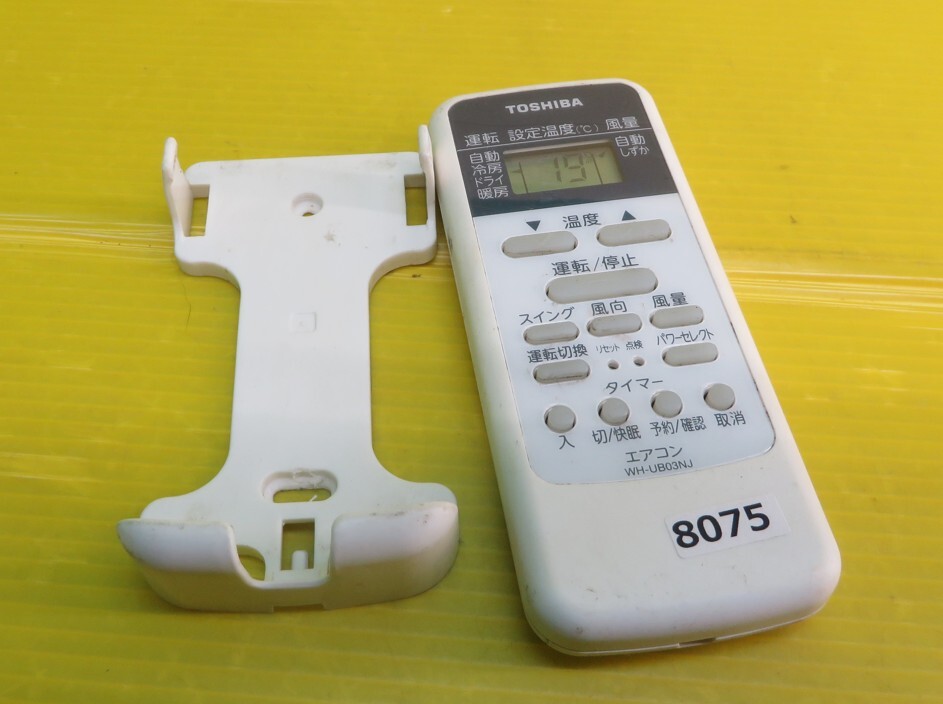 T-8075TOSHIBA 東芝  エアコンリモコン  WH-UB03NJホルダー付 動作品  保証付