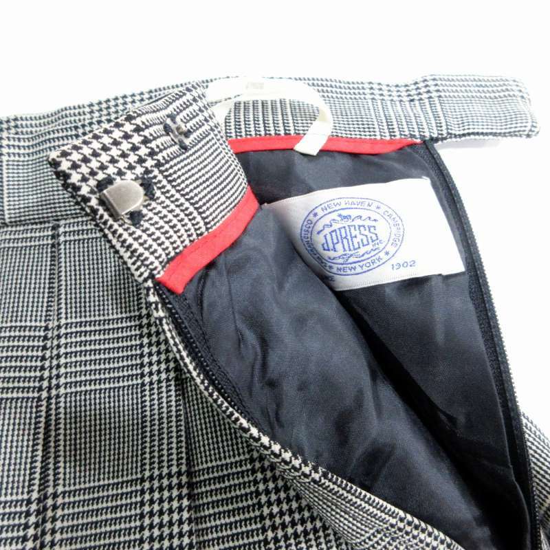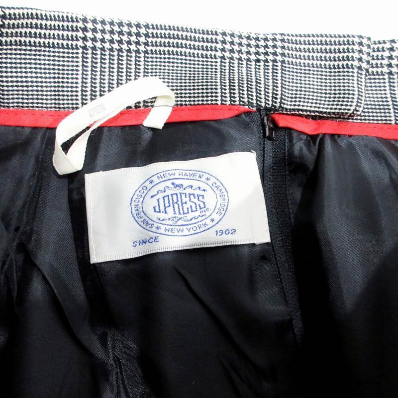 ジェイプレス J.PRESS 美品 プリーツスカート グレンチェック ウール ミモレ丈 9 約M 白黒 ホワイト ブラック 0410 レディース