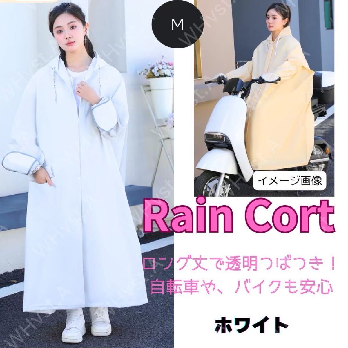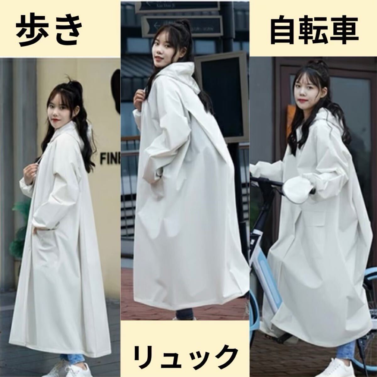 雨の日の自転車や原付バイクでの移動を快適にする、ロング丈レインコートです。