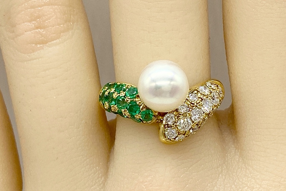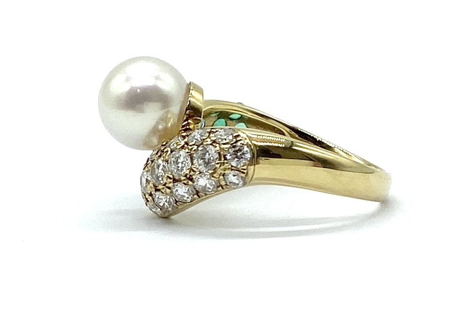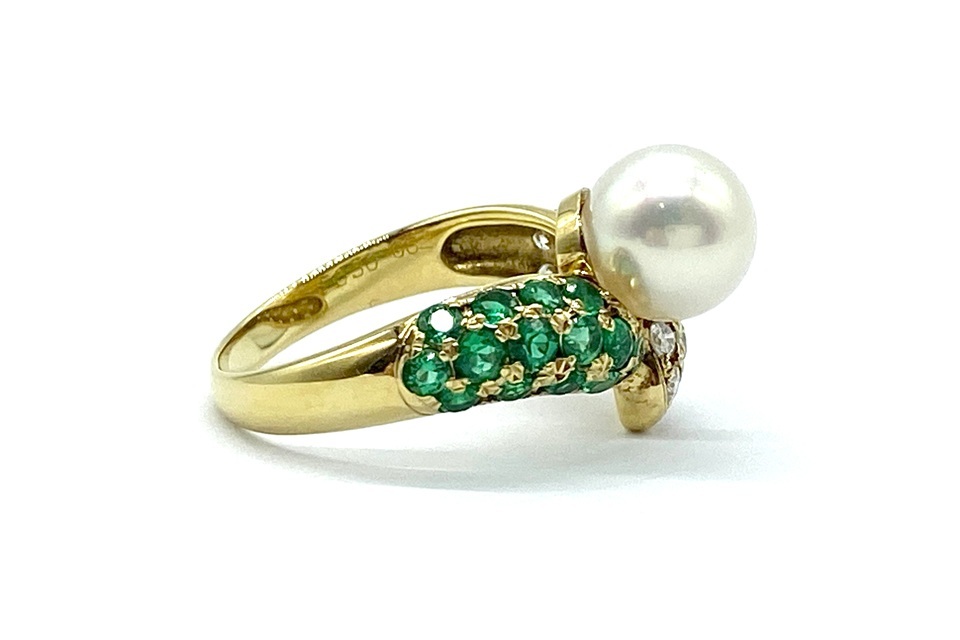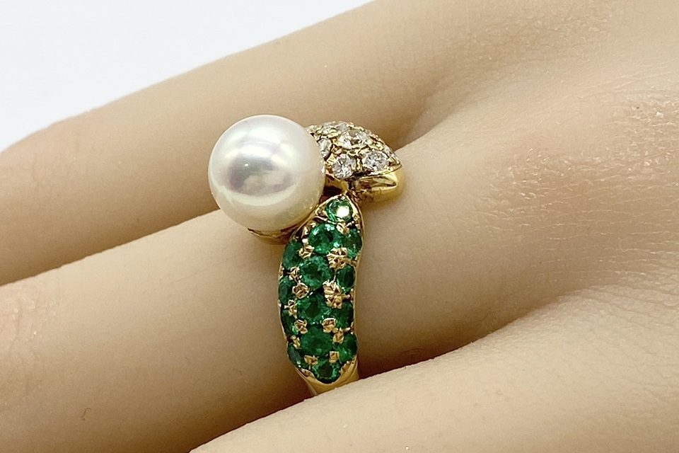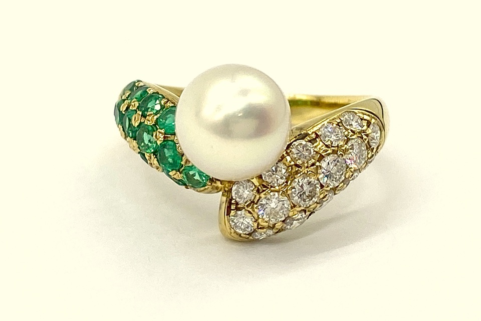 品名 | 【Akoya Pearl】 K18アコヤパール エメラルド ダイヤモンドリング |