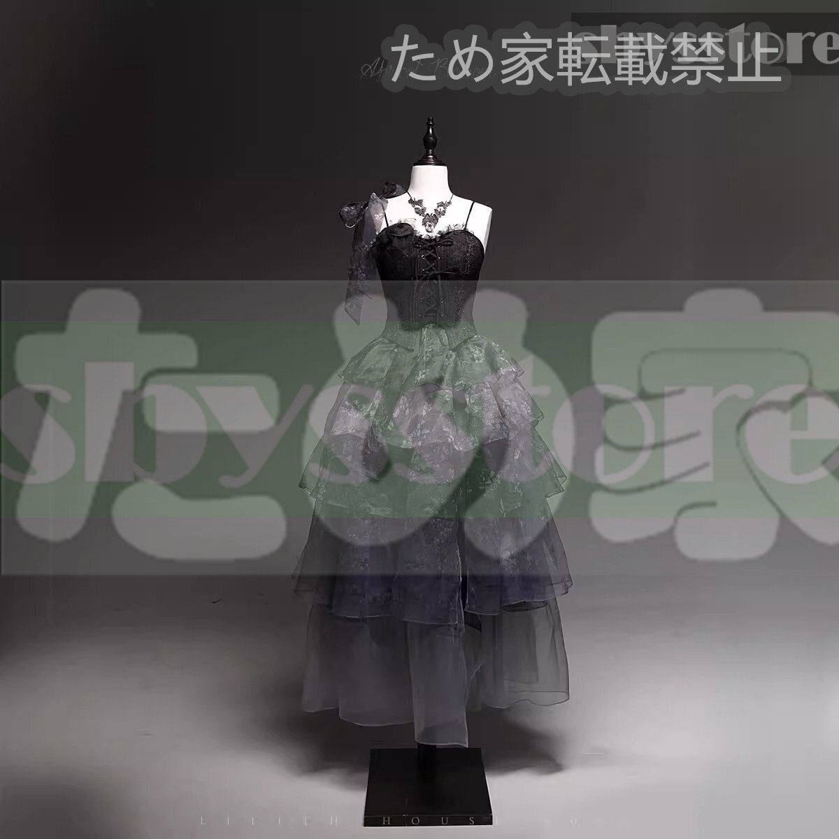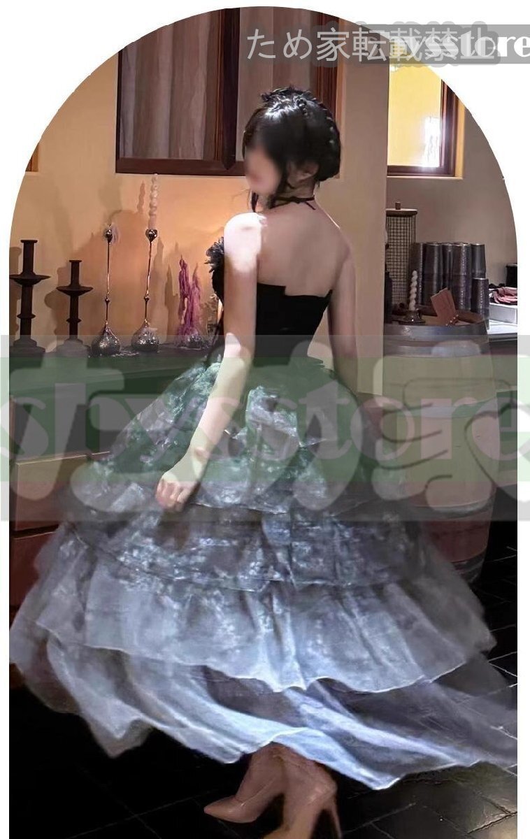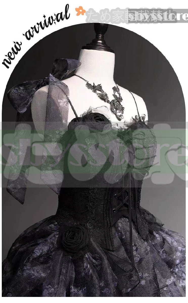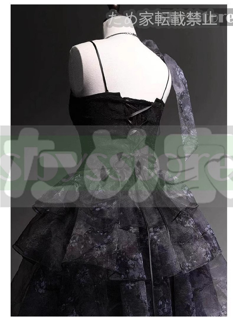 ブラック 杏の木 ワンピース ロリータ ドレス 2025年新作 司会 成人式 卒業 芸術試験 プリンセスチュールスカート