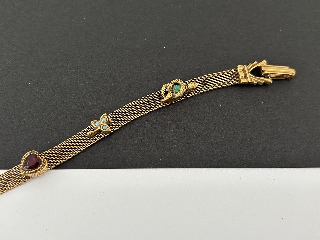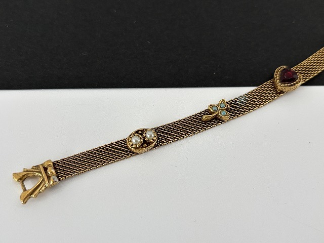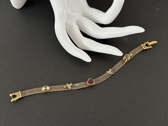 ゴールドトーンメッシュブレスレットに素敵なパーツがデザインされた