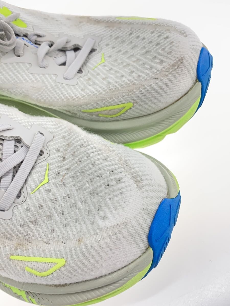 | 左右アウトソールのグレー部分に剥がれがございます。また全体的に使用感があり多少の汚れもございます。(写真でご確認ください) |