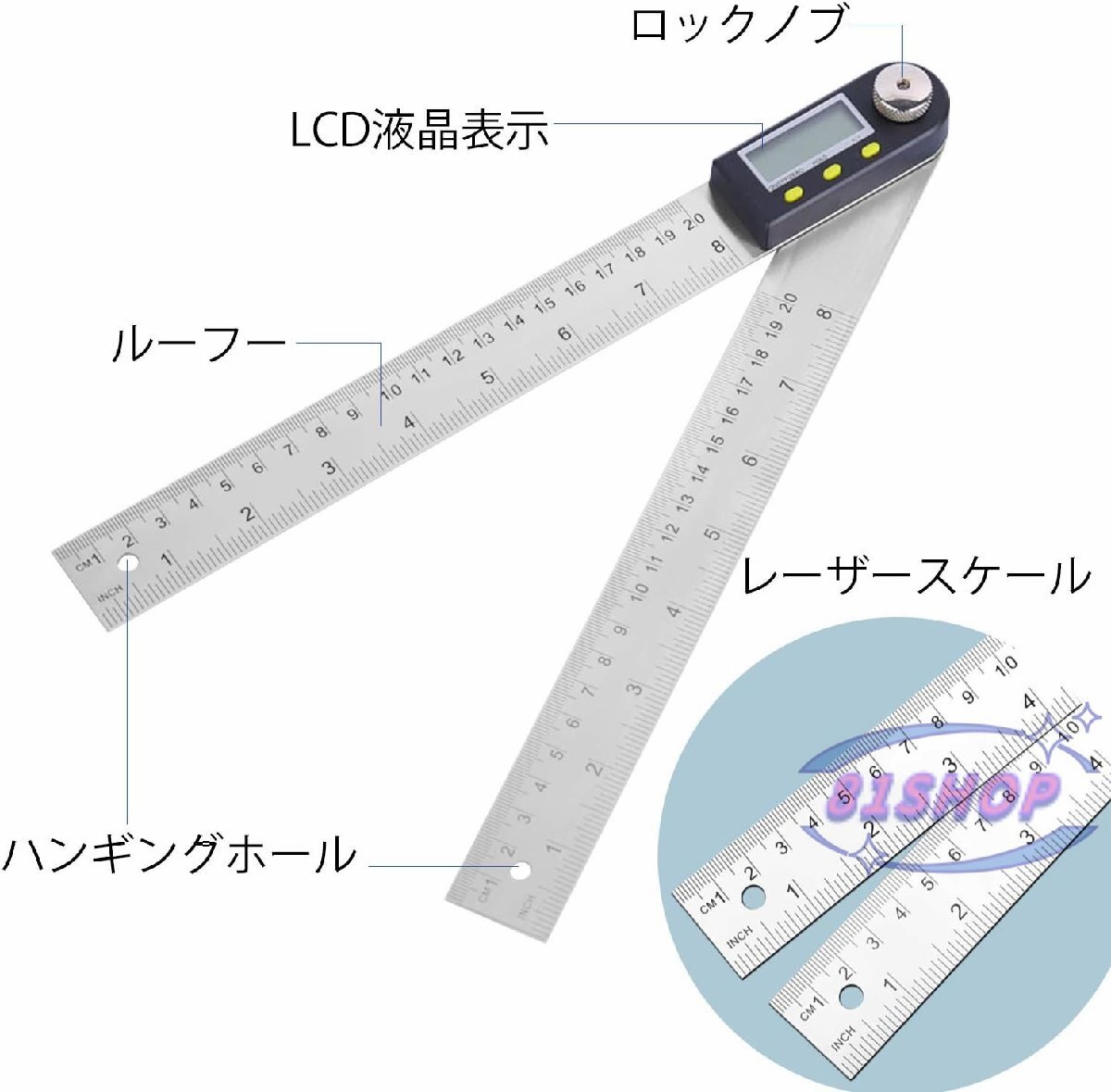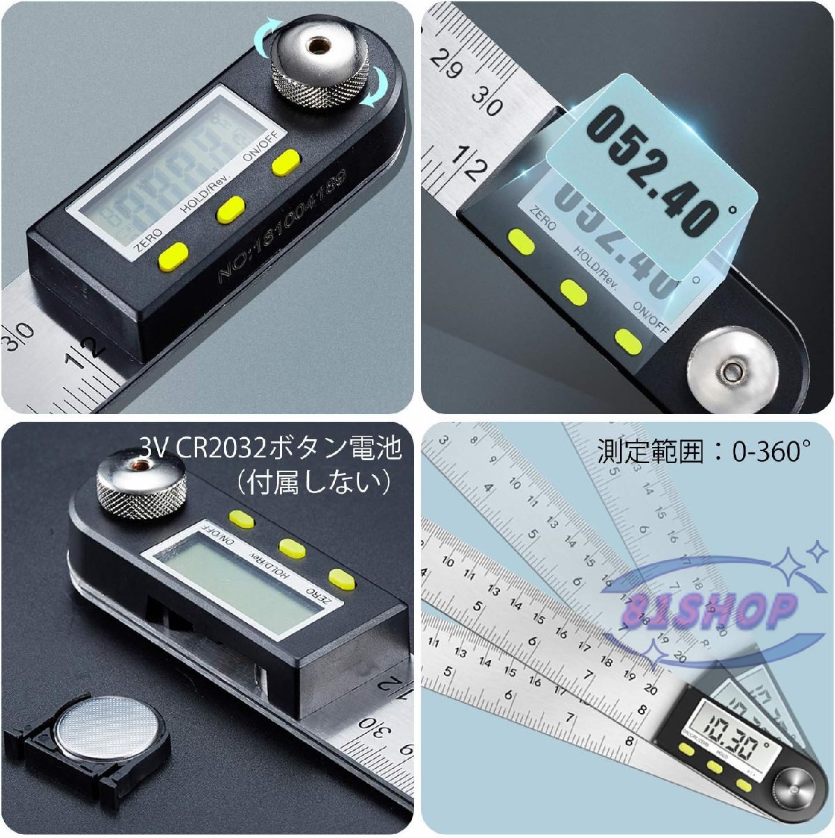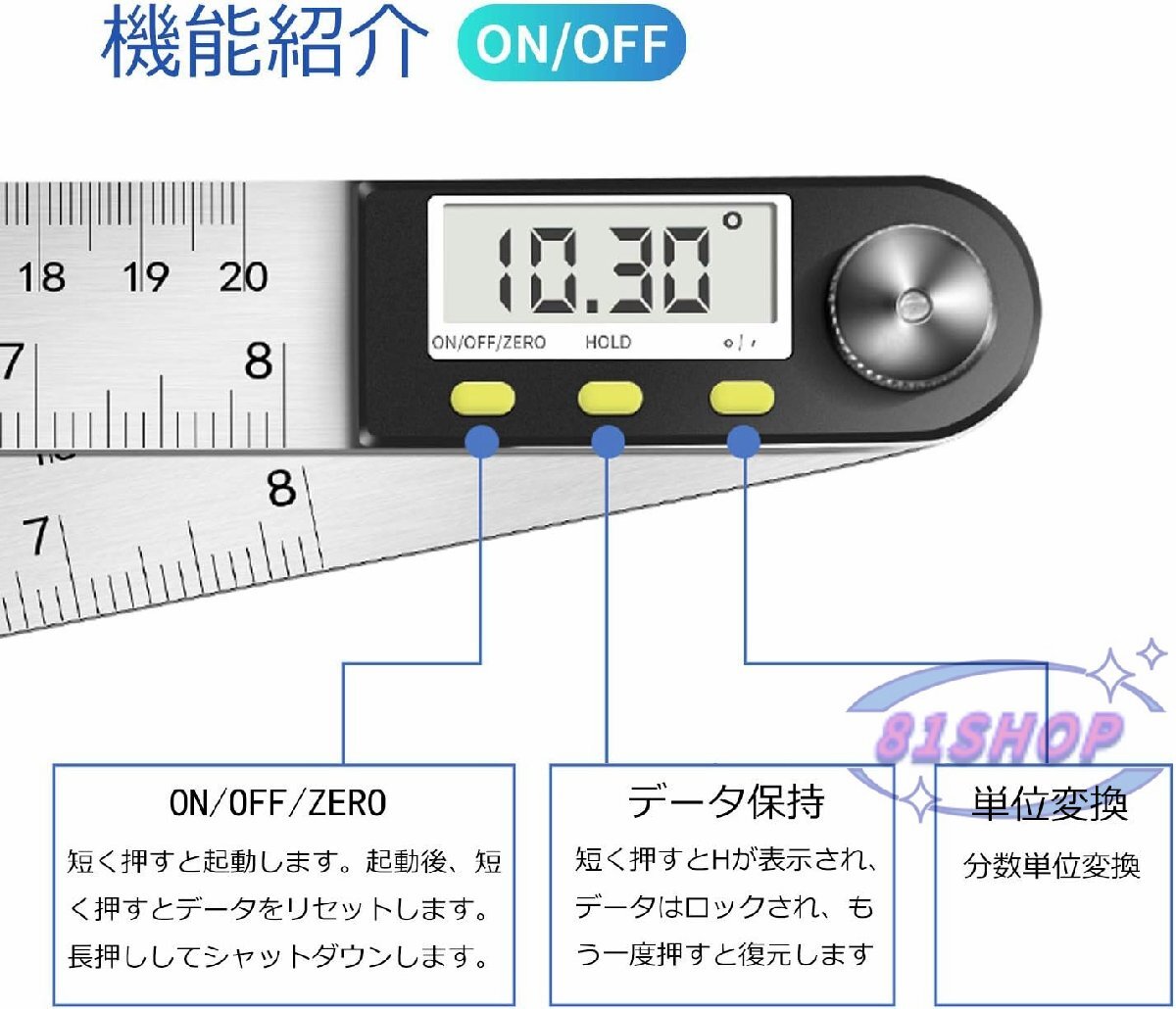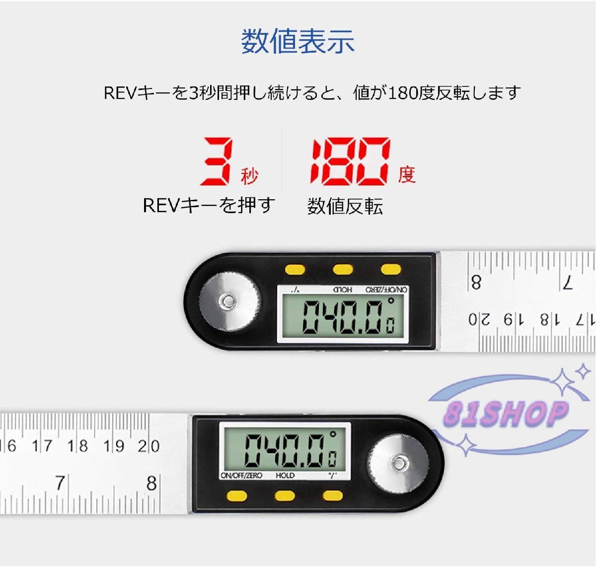 「81SHOP」デジタル角度定規 角度ゲージ ステンレス鋼 500mm / 0-360° ホールド機能 角度・長さ測定