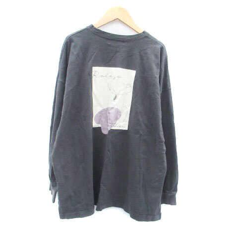 コーナーズ LOWY by Corners Tシャツ カットソー ラウンドネック 長袖 プリント オーバーサイズ F チャコールグレー /HO36 レディース