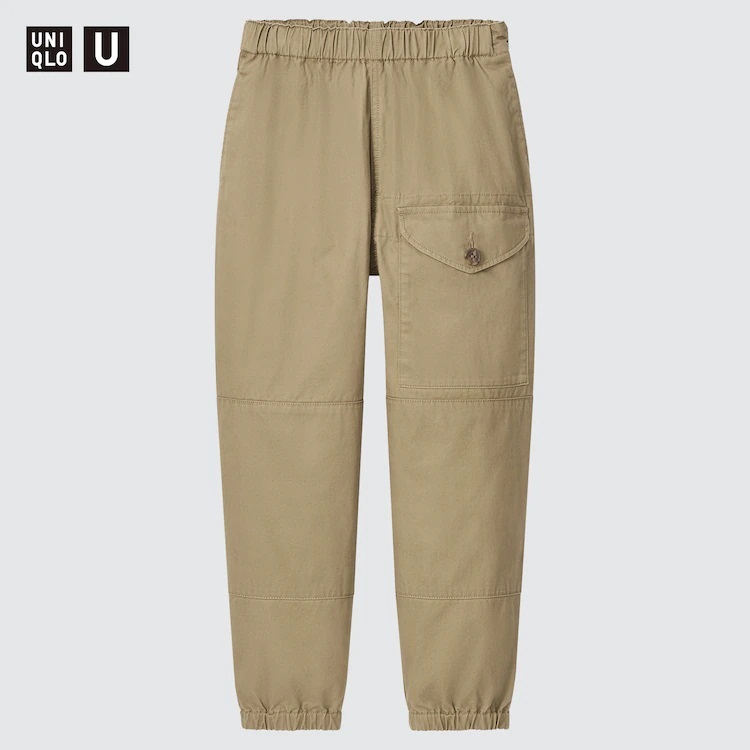 【新品・120・ベージュ】 ユニクロ ユニクロユー UNIQLO U KIDS ワイドフィットジョガーパンツ イージーパンツ ゆったり ウエストゴム