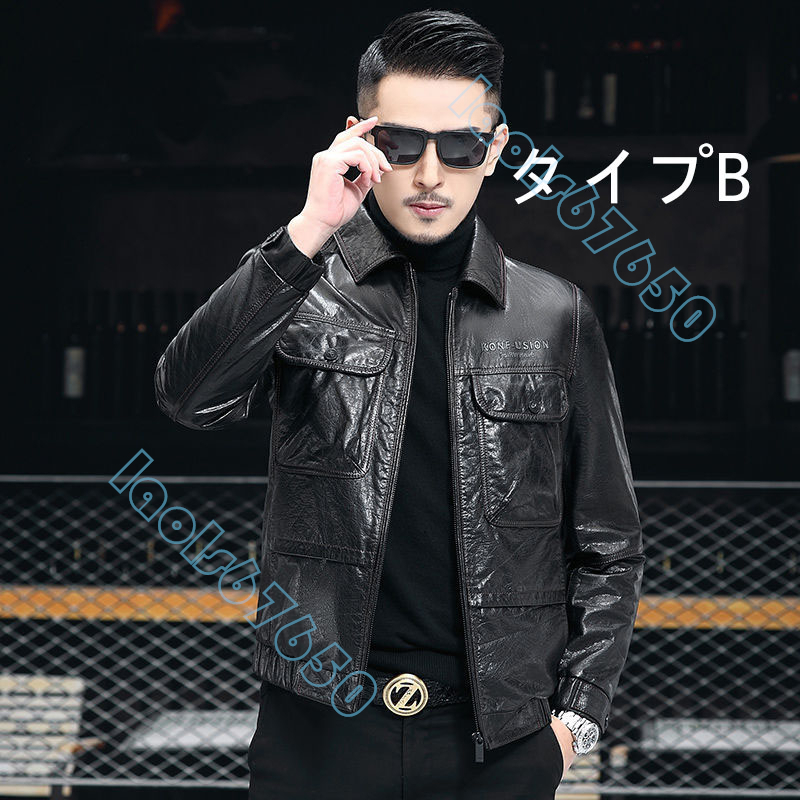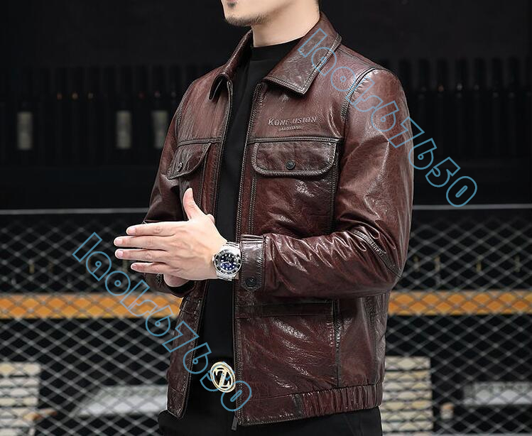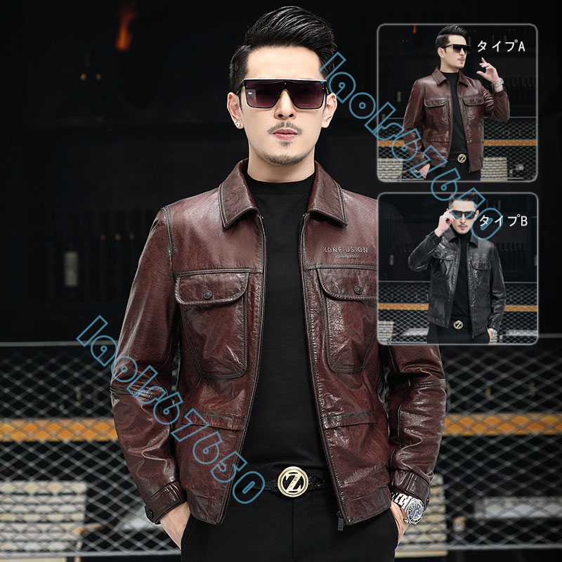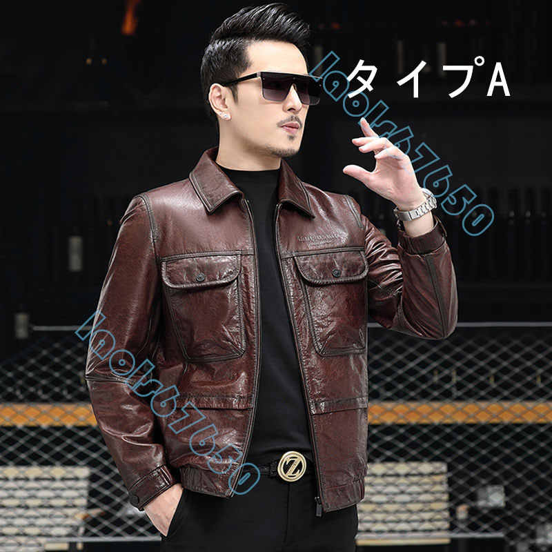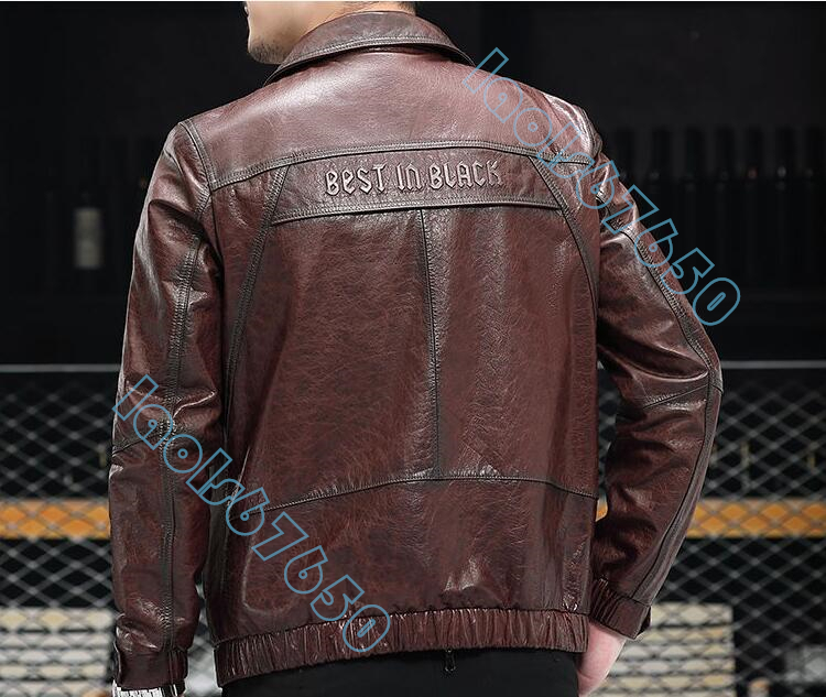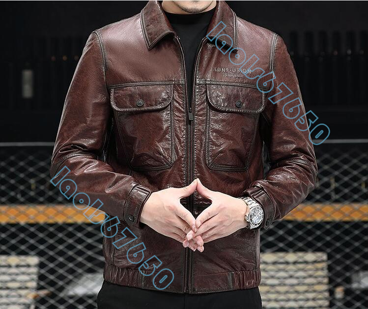 新しい メンズ 本革 牛革 ショート スリム フィット カジュアル ジャケット オートバイレザージャケット ラペル