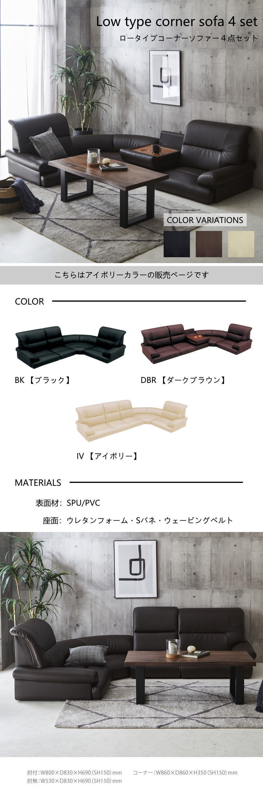 | ◆ 商品名 | コーナーソファー4点セット 36S |