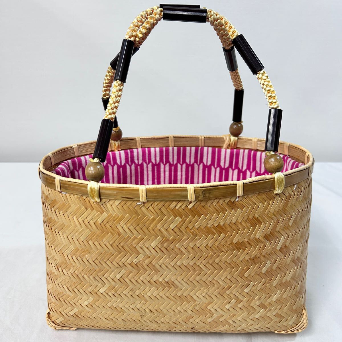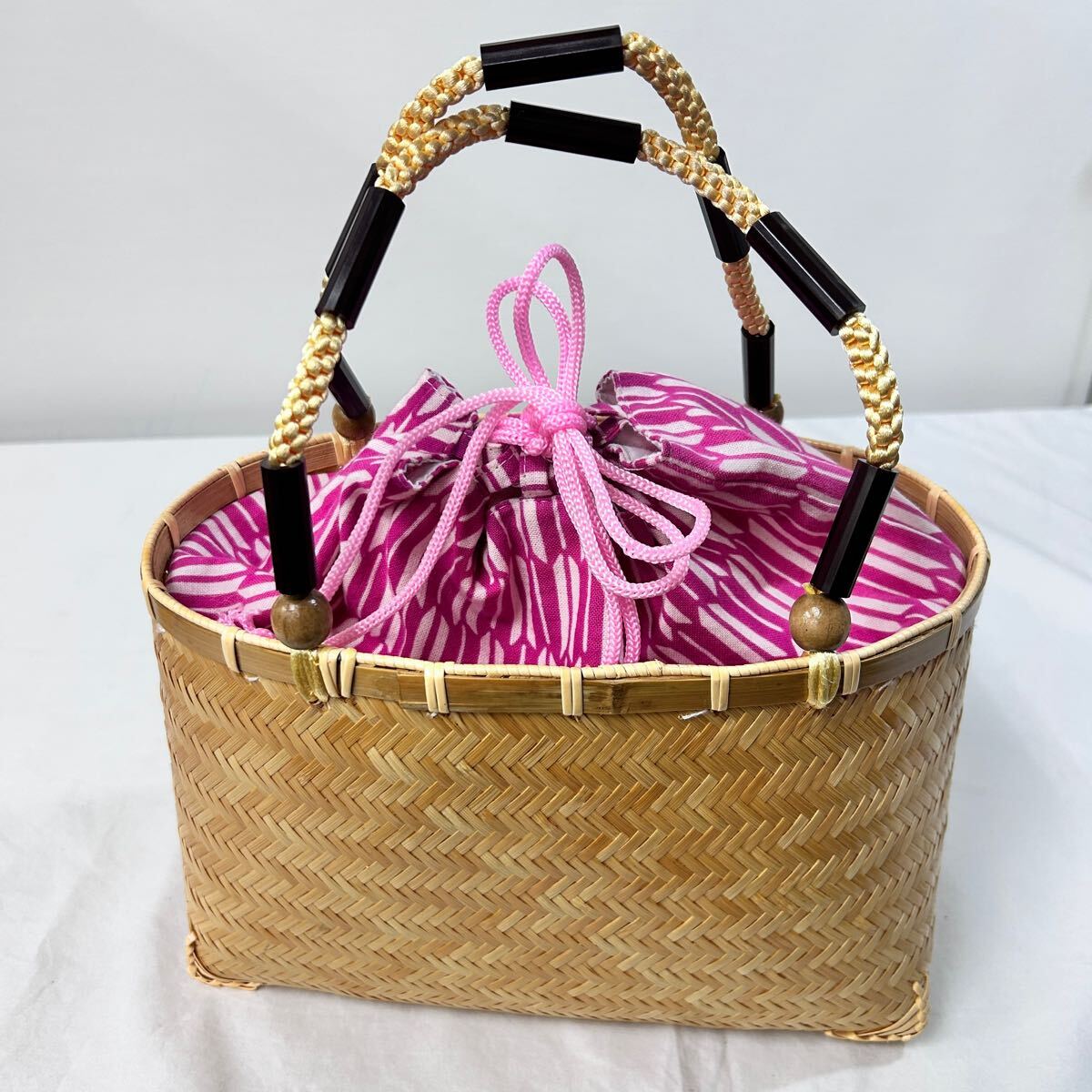 ★美品★ 竹編みバッグ 竹細工 小物入れ籠 竹編包 竹製品 ハンドバッグ 和装バッグ バスケット ピクニック 着物 浴衣 レディース(04297並