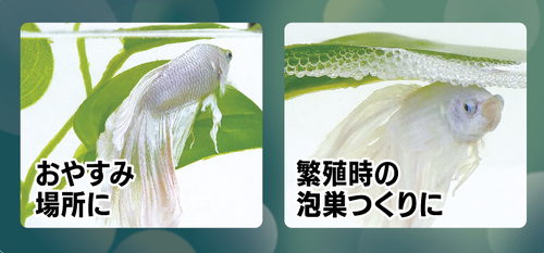 ●ベタは自然下において水草の陰に隠れて生活しています。 本製品は水草を寝床や休憩場所にするベタの習性をいかした人工水草です。休む事で、ベタがリラックスし、ストレスを減らすことにも役立ちます。繁殖時のオスの泡巣作りにも最適です。