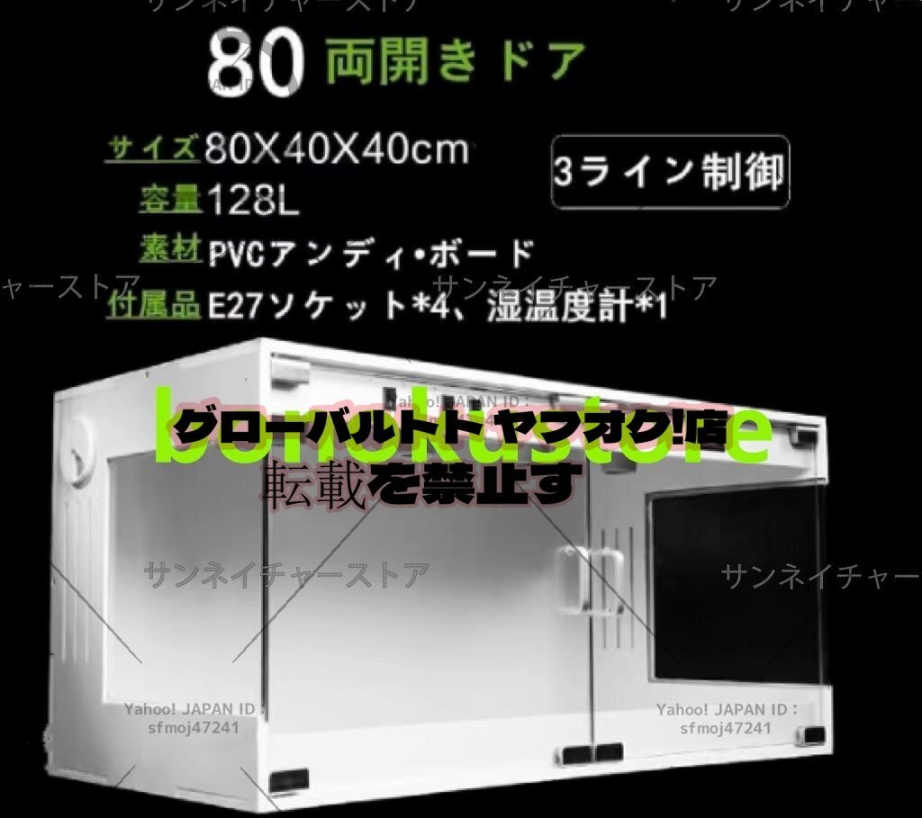 商品説明 商品説明 商品説明 たくさんの展出品の中に弊店の製品をご覧頂き、ありがとうございます。【商品詳細】状態:新品未使用【商品仕様】:80*40*40CM スペース:128L 材質:PVC 厚さ1CM 三線コントロール パッケージ内容:ケージ、E27ソケット4つ※ロットにより、ボー