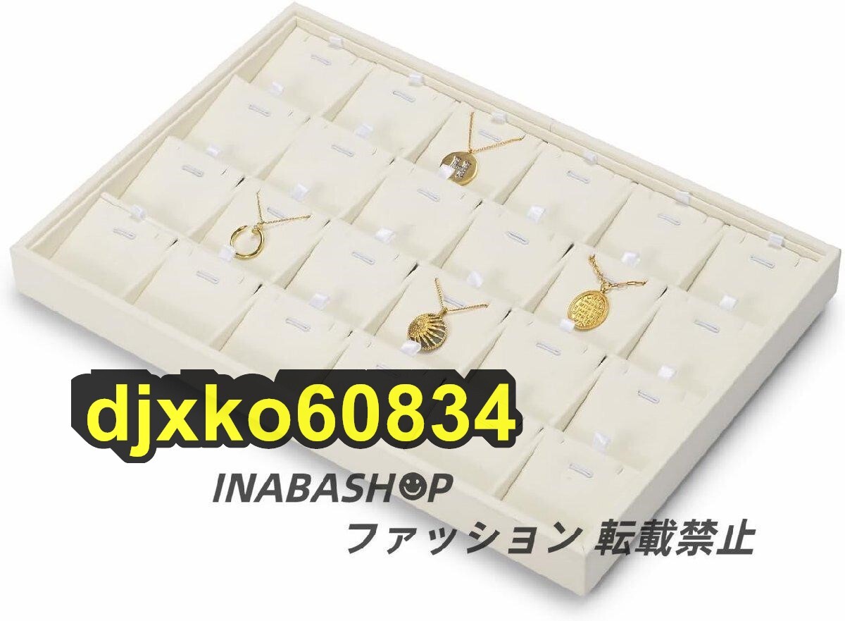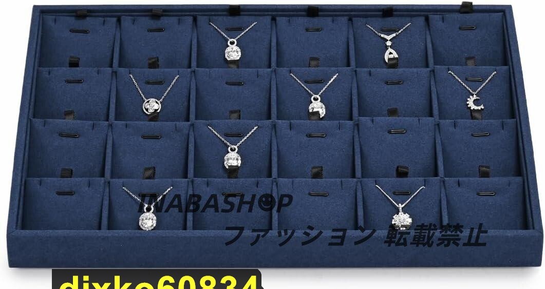 ★状態:新品未使用 ※落札後にご希望のタイプをご連絡ください。 【素材】このジュエリートレイは、市場に出回っているPUレザーやベルベット素材とは異なり、高品質のマイクロファイバーを使用することで、肌触りを良く、見た目もスタイリッシュです。 【仕様】サイズ35*24*3センチ、重さ0.6キロ。大量のアクセサリーをまとめて収納出来る収納トレイになります。(1個ジュエリートレイの付属、ジュエリーを除く) 【デザイン】固定スロット設計なので、24本のペンダントをきれいに収納することができます。複数のボックスを積み重ねて保管しても場所を取らずに重宝します。 【幅広い用途に対応】ハイエンドのコマーシャルディスプレイ、ウィンドウディスプレイ、ブランド構築、記念コレクション、ギフト、美容室や床屋、ネイルサロン、エステサロンなどのお店での使用などに適しています。