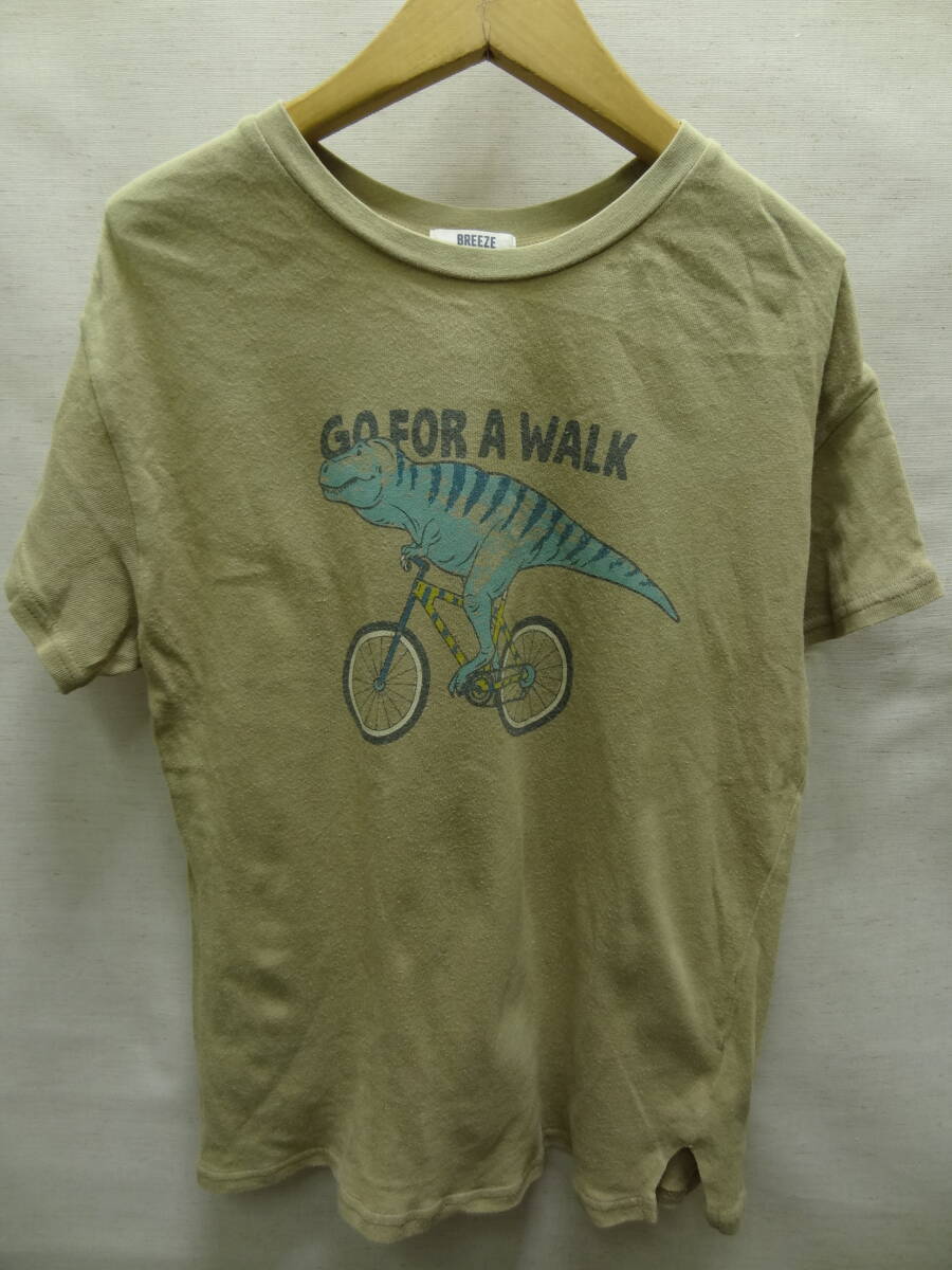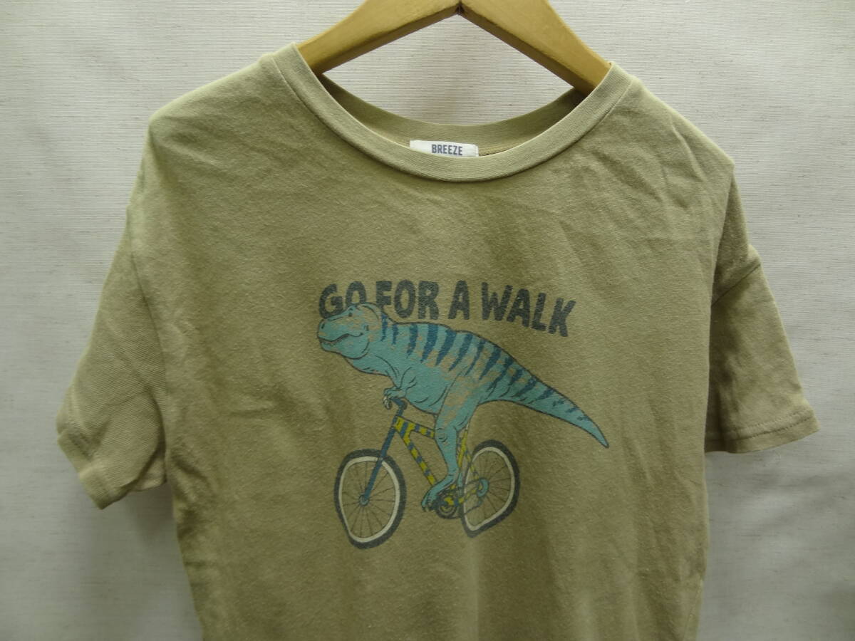 全国送料無料 ブリーズ BREEZE 子供服キッズ男&女の子 自転車に乗る恐竜柄 半袖 くすみカラーTシャツ 150