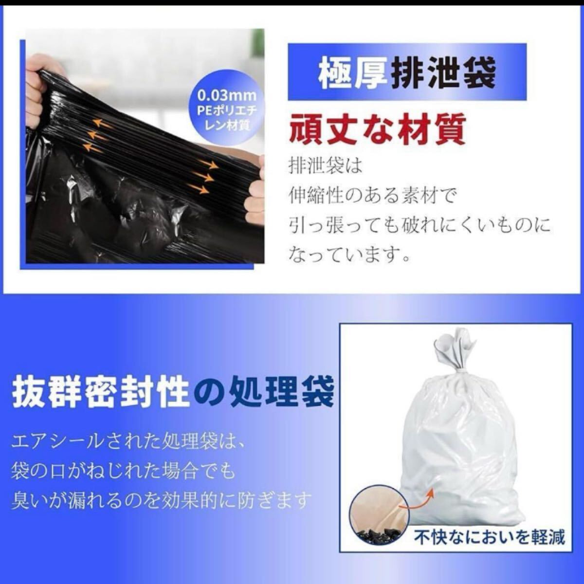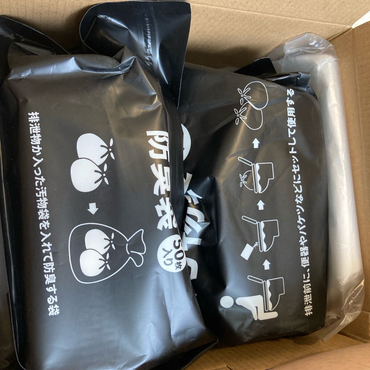 凝固剤、黒汚物袋、白処理袋、手袋