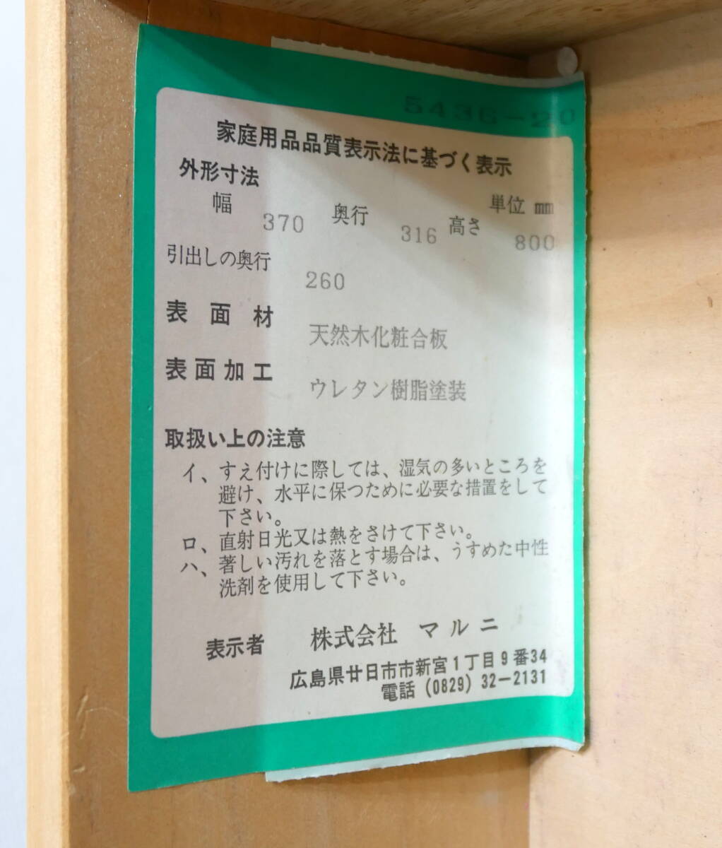 | 商品説明 | ・・・リユース品・・ ※注意事項は必読の上、入札お願いいします。 北海道、沖縄、離島は別途料金がかかりますので ご注意くださいませ。 状態:中古品のため細かい傷や汚れございます。 やや使用感あり。 引き出しの中にもよごれございます。 サイズ(約) 高さ 80cm 幅 31.6cm 奥行き 37cm 引き出し1、2段目 高さ 9cm 幅 26cm 奥行 26.4cm 引き出し3段目 高さ 12.5cm 幅 26cm 奥行き 26.4cm |