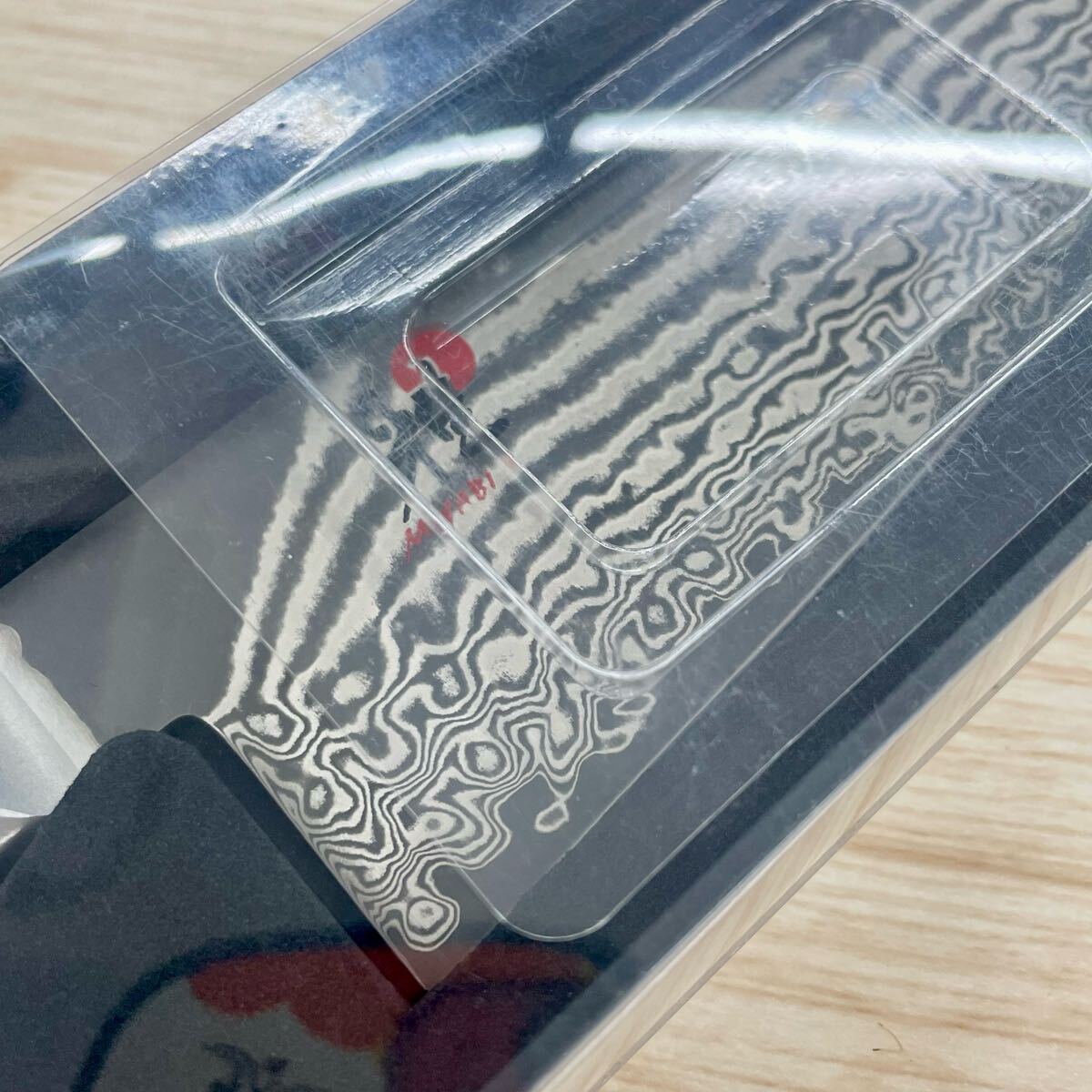 2パターンが織り成す斬新なダマスカス紋様(49層積層構造)に、光と影が立体的に響き合います。鋼材には鋭い切れ味と永切れを実現した高硬度ステンレス鋼(FC61)を使用。FC61は硬度約61(HRC)、分子が繊細で刃付きが良く、刃欠けしにくいのが特徴。