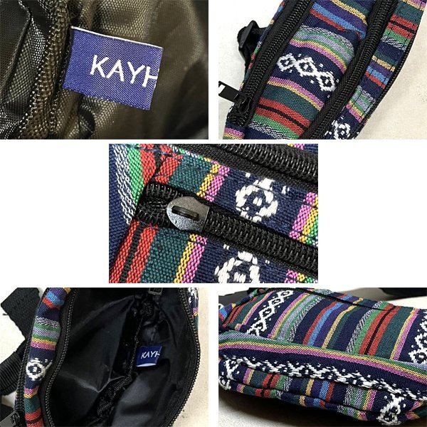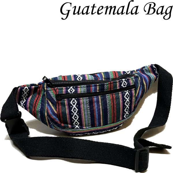 1点物◆ガテマラ柄ウエストバッグ黒ポーチ古着メンズレディースOKアメカジ90sストリート/スポーツMixカバン鞄スポーツブランド中古348831