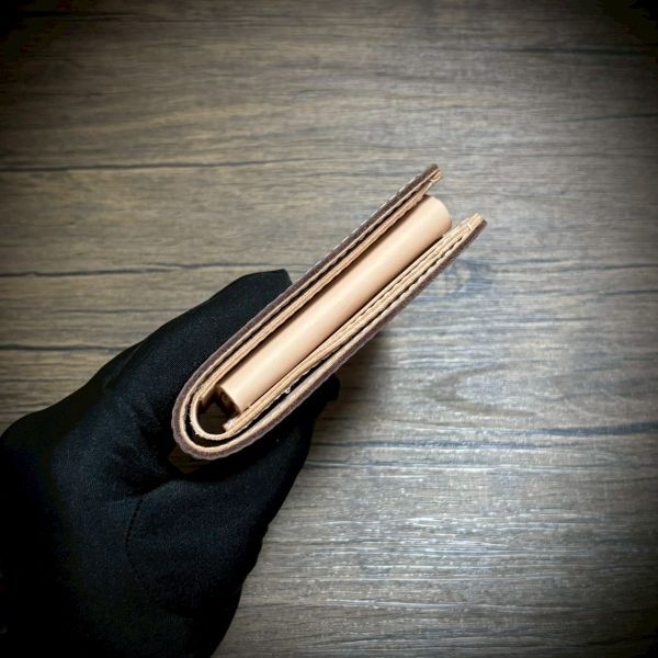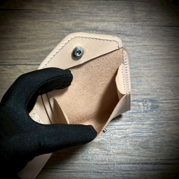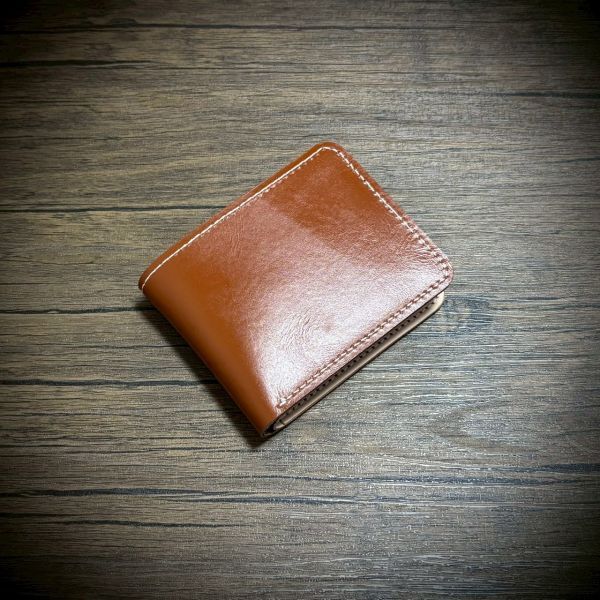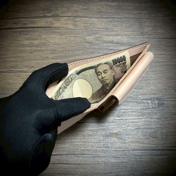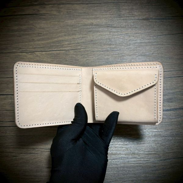 ヌメ革の小銭入れ付きの二つ折り財布。