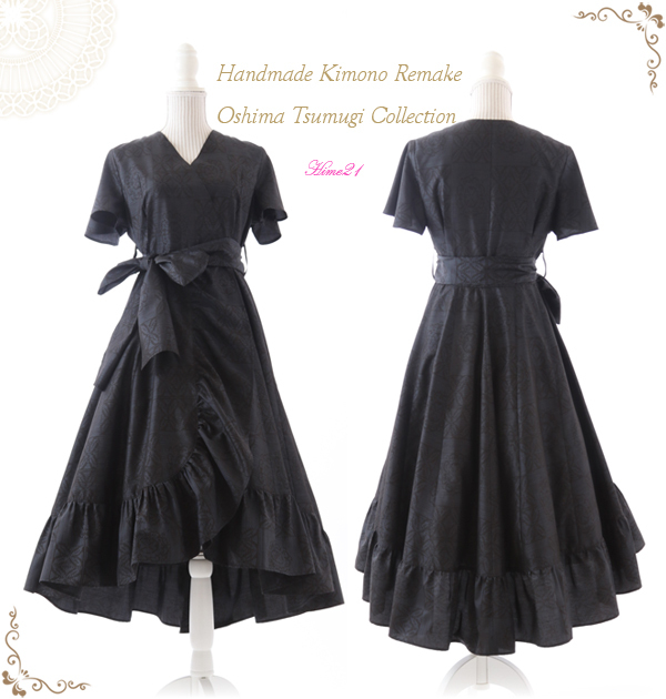 大島紬を麗しく着る、大人のフリルワンピース♪