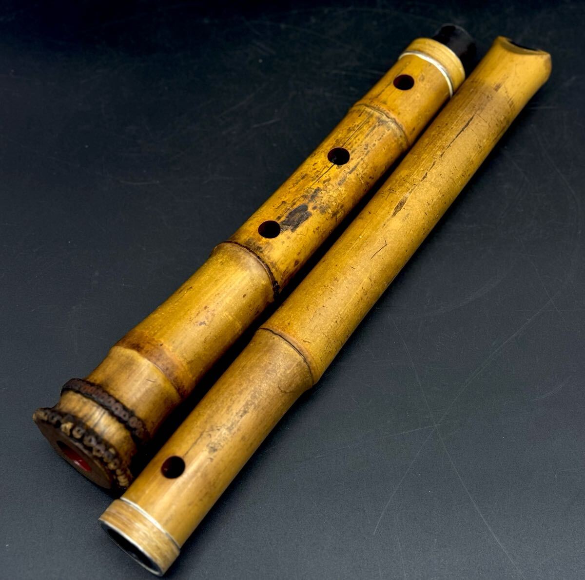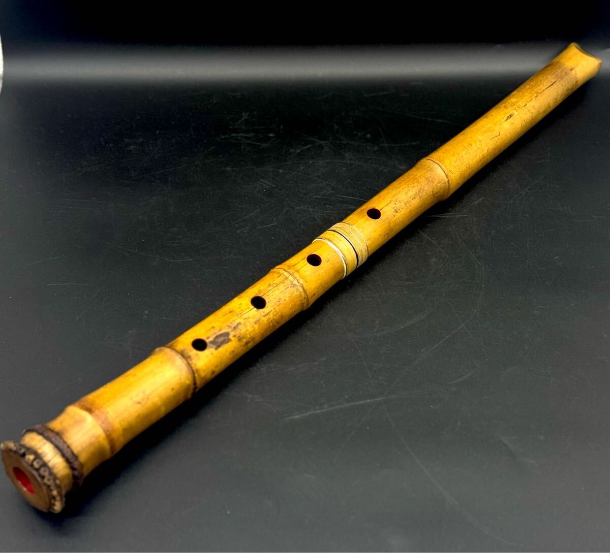 尺八 在銘あり 仙山 全長約62cm 都山流 銀歌口 銀巻歌口 銀三線籐巻き 銀三線 和楽器 中継ぎ 管楽器 楽器■兵庫県姫路市から j7 25-2226