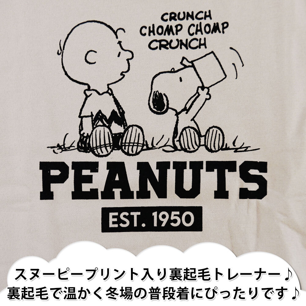 正規店仕入れの新品未使用品です 綿とポリエステル素材で、吸汗速乾に優れます スヌーピープリント入り裏起毛トレーナー 裏起毛で温かく冬場の普段着にぴったりです |