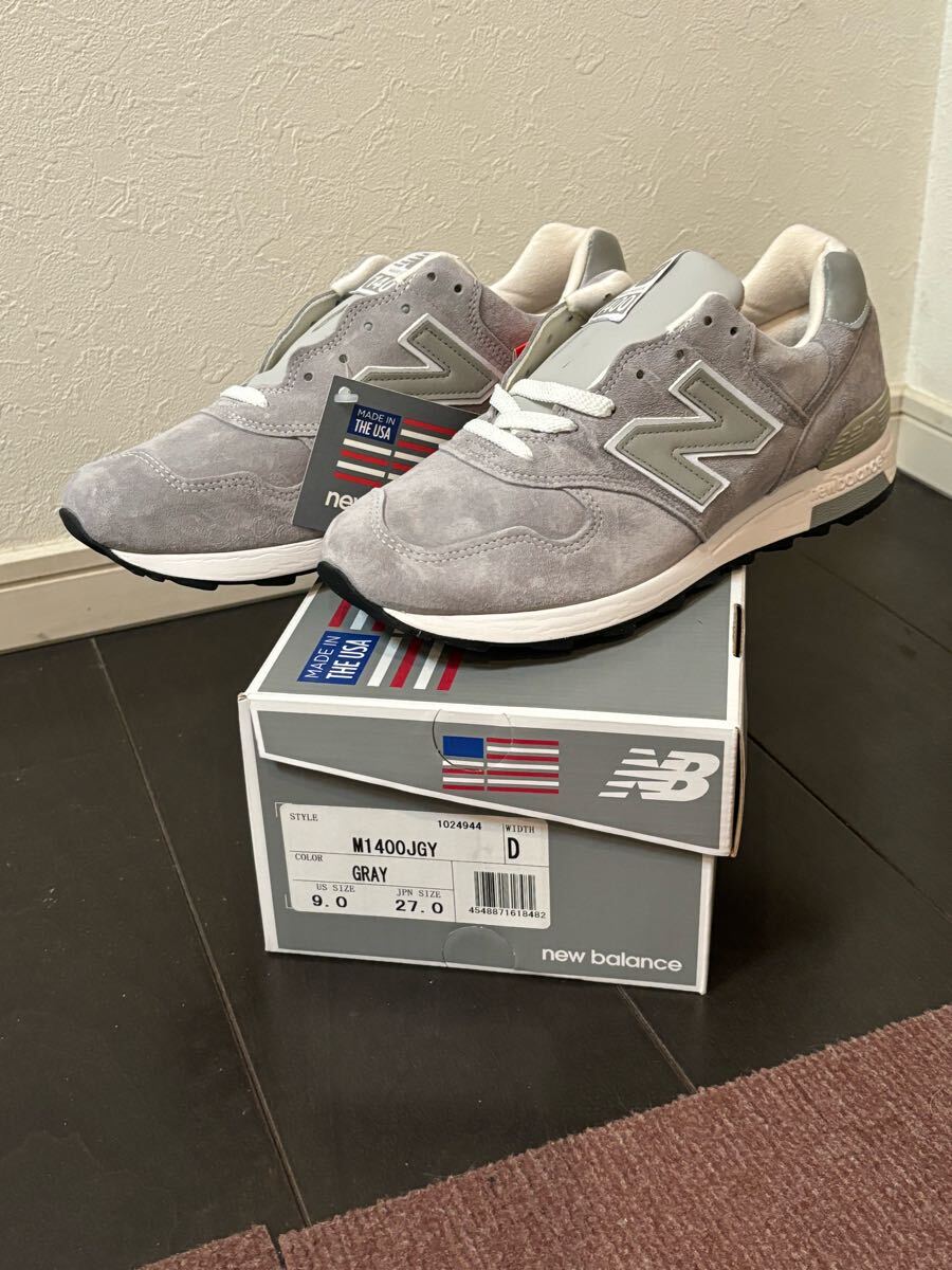 生産終了しているMade in USAの希少なニューバランス M1400になります。一番人気のグレーで、サイズはUS9、27cmです。新品デッドストックは、なかなか見つからないと思いますので、この機会にいかがでしょうか?神経質な方は入札をご遠慮下さい。ノークレーム、ノーリターンでお願いします。