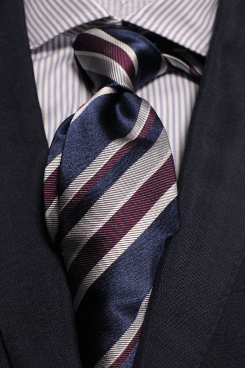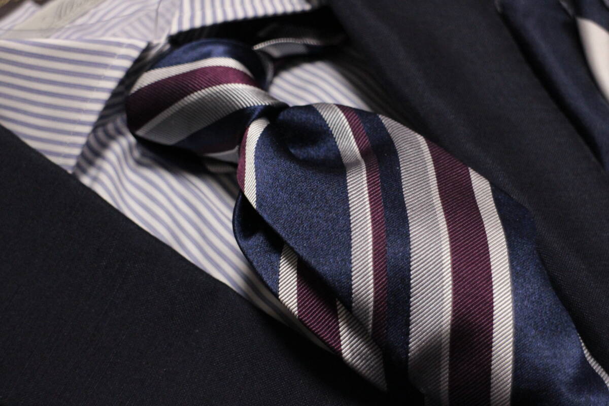 ライプをあしらった、華麗でコンテンポラリーなレジメンタルタイ。