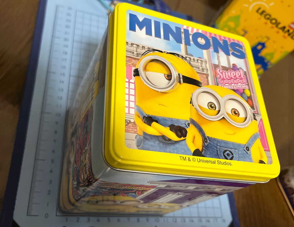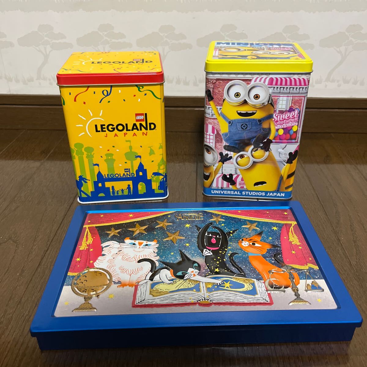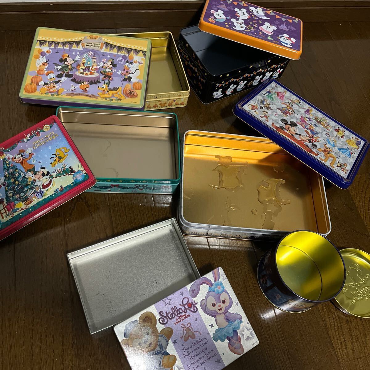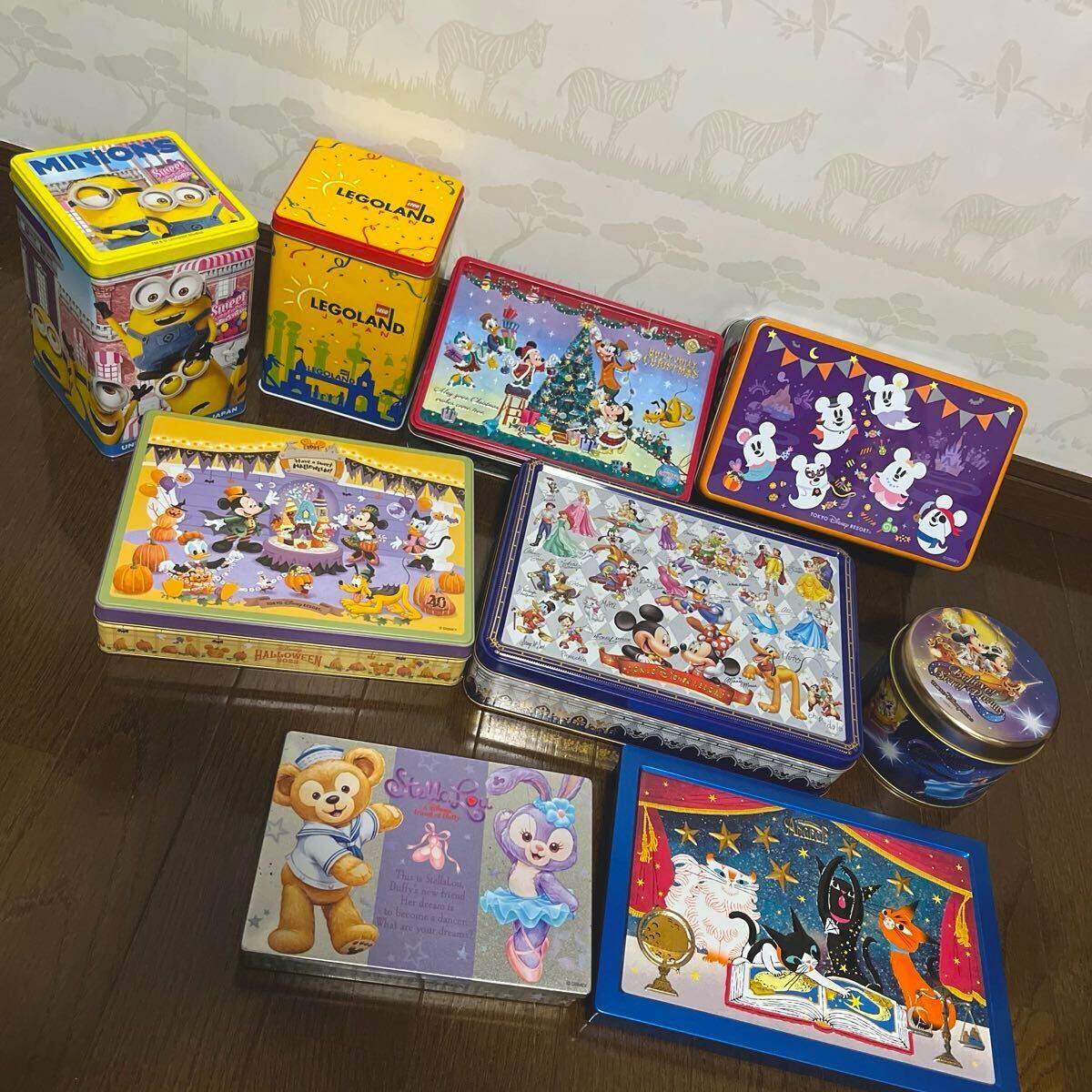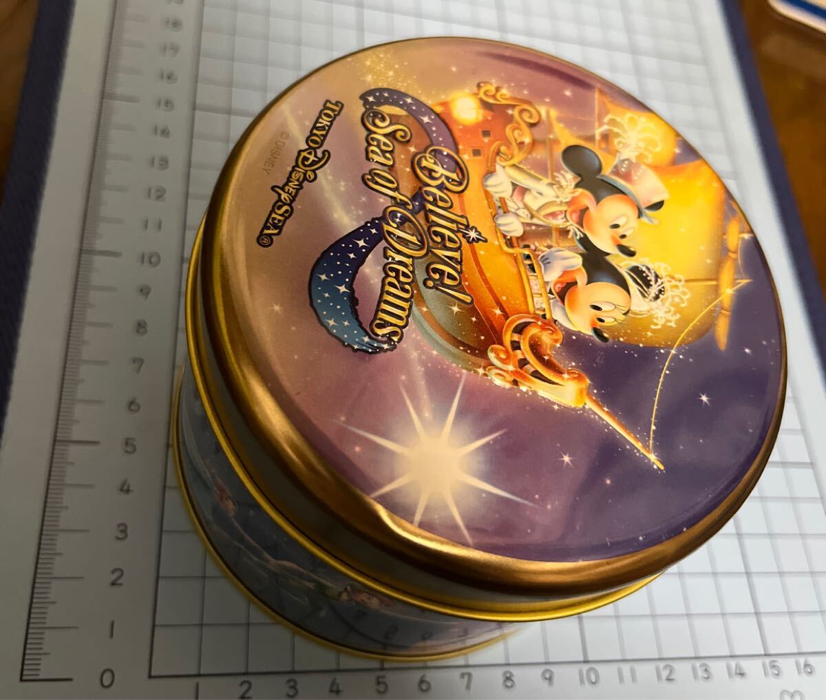 プリンセスの缶は、娘がレジンで遊んだので、透明のレジンがこぼれてかたまっています