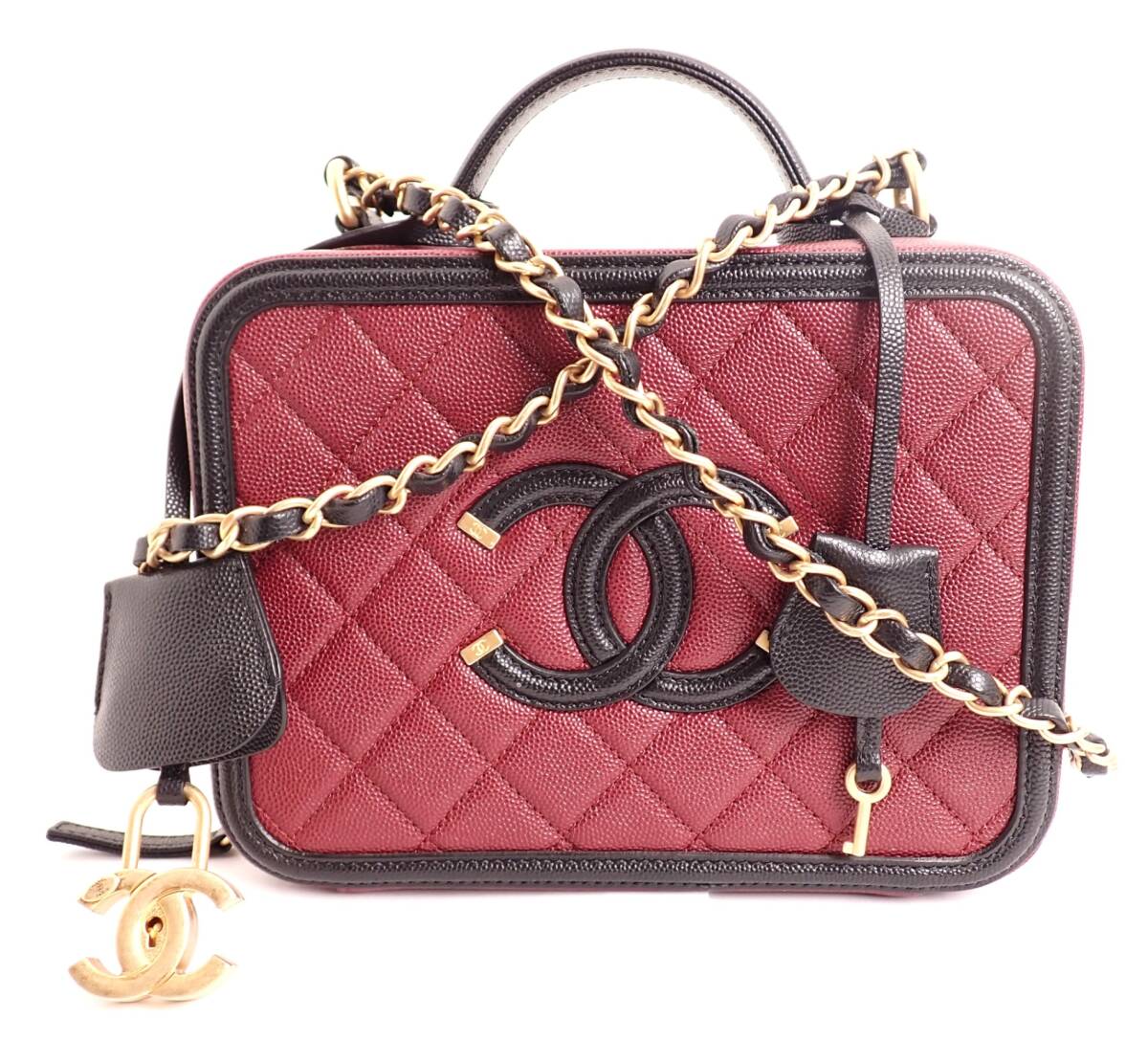 コメント | こちらはCHANEL(シャネル)の2WAYバッグ、マトラッセ キャビアスキン CCフィリグリーのモデルです。ボルドーとブラックの洗練された配色が特徴です。このバッグは、シャネルの象徴ともいえるマトラッセキルティングが施され、高級感のあるキャビアスキンが使用されています。キャビアスキンの特性として耐久性に優れ、傷がつきにくい点も人気の理由です。ボルドーとブラックのカラーコンビネーションはエレガントで、さまざまなスタイルに合わせやすいクラシックな色合いです。2WAY仕様となっており、ショルダーストラップを使って肩掛けや斜め掛けとしても利用可能で、シーンに応じてスタイルを変えられるため、利便性に優れています。また、CCフィリグリーロゴがアクセントとなり、シャネルらしいアイコニックなデザインが際立ちます。このバッグは、フォーマルな場面から日常のカジュアルなスタイルまで多くのシーンで活躍します。僅かなコキズやスレ等ございますが、特に特筆すべき点もなく、まだまだ長くお使いいただける綺麗なお品です。 |