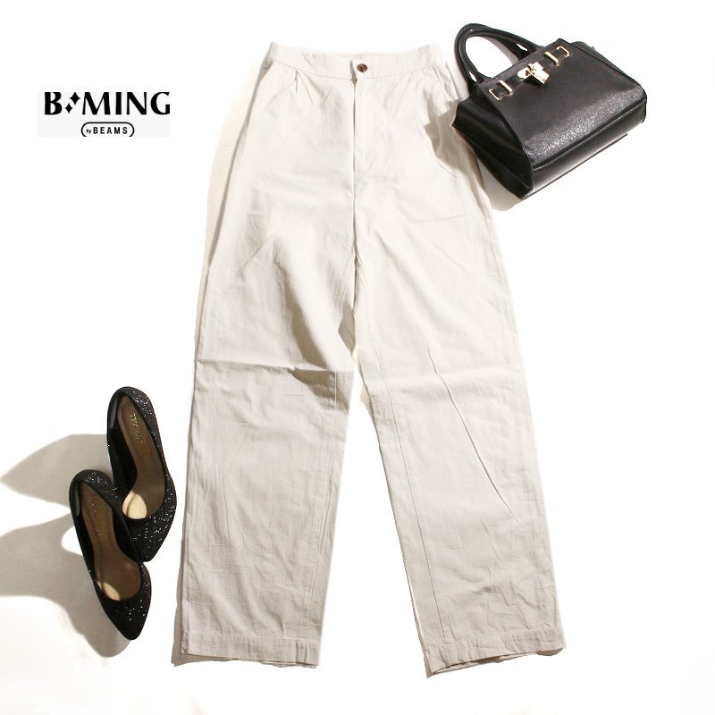 美品 B:MING ビーミング by ビームス 春 夏 コットン 綿100% パンツ ホワイト 白 薄ベージュ ミセス ママ カジュアル シンプル S