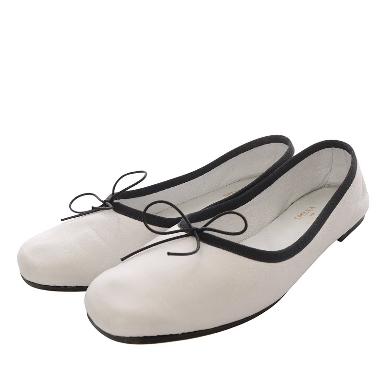 ドゥロワー Drawer スペルタ SPELTA NAPPABIANCO コラボシューズ バレエシューズ パンプス フラット リボンモチーフ レザー 37 ホワイト
