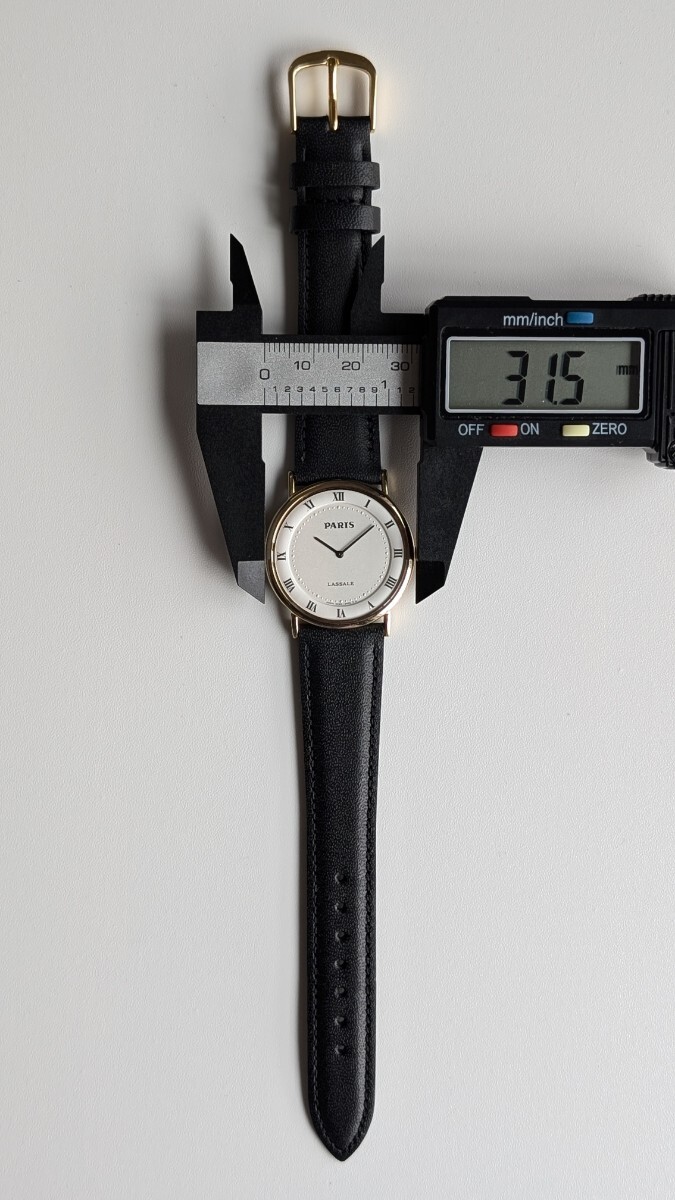 ケース径は竜頭を含まず横幅約31.5ミリでメンズですがレディースでもお使いいただけるサイズ感です。